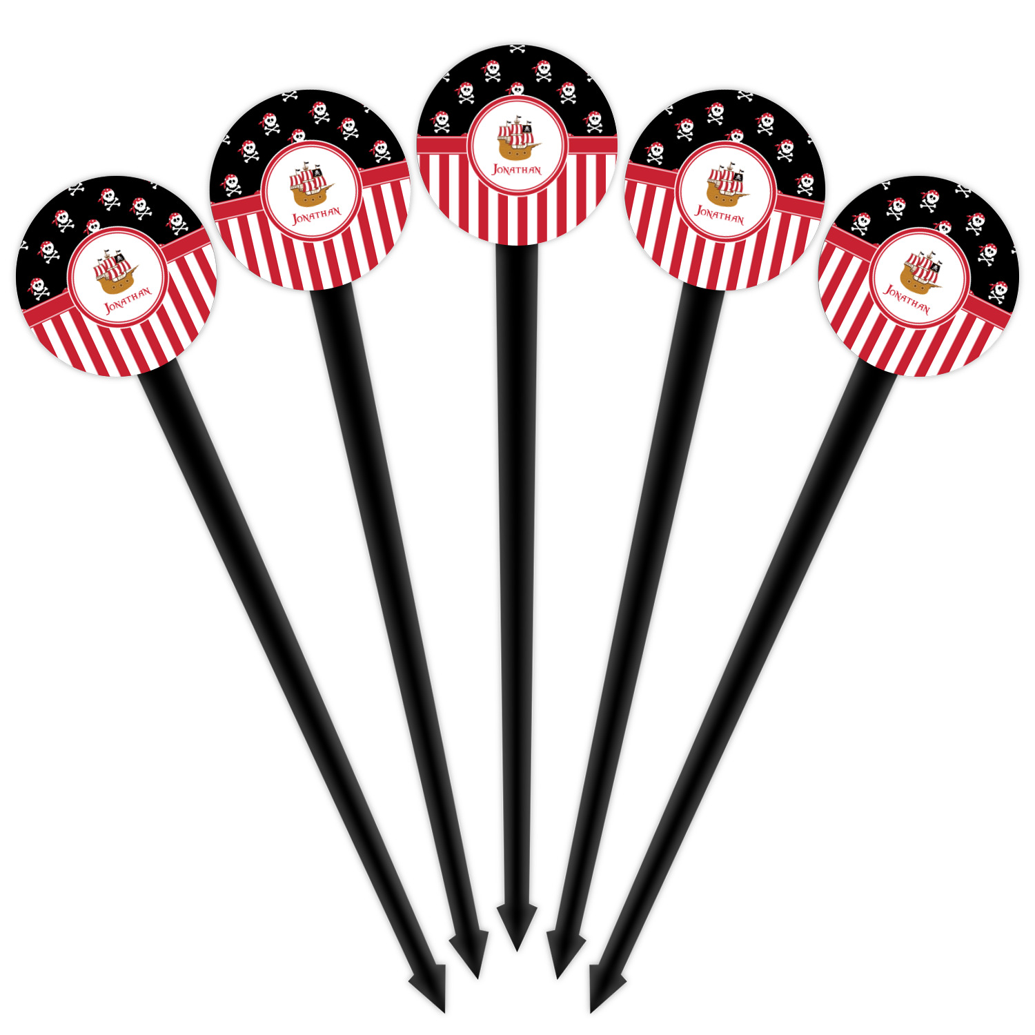 Pirate Ship Designs for 4" Round Plastic Food Picks - Black - Single-Sided