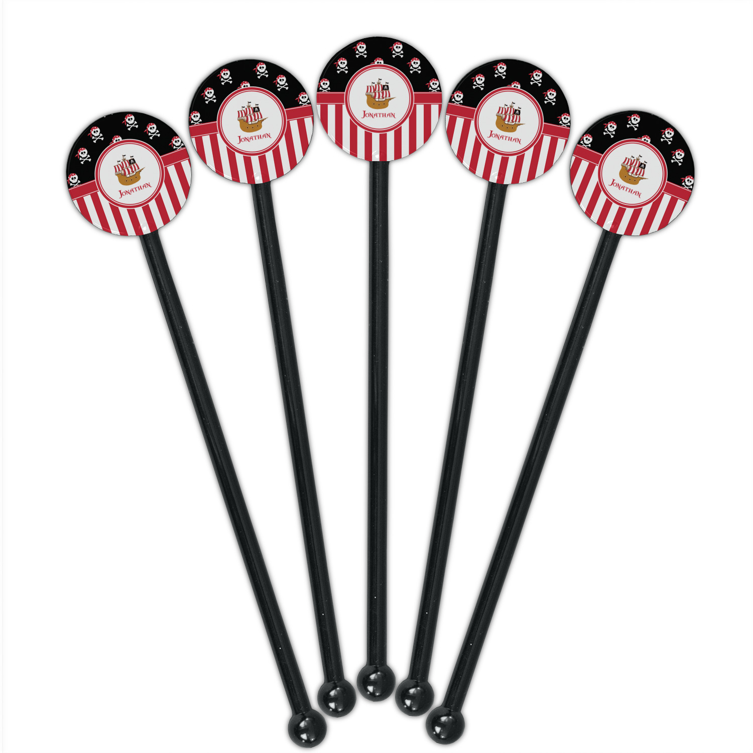Pirate Ship Designs for 5.5" Round Plastic Stir Sticks - Black - Single-Sided