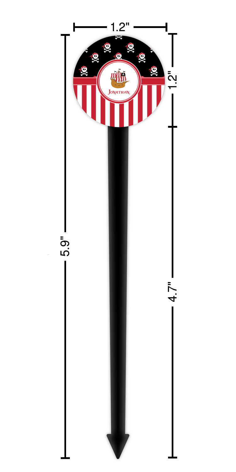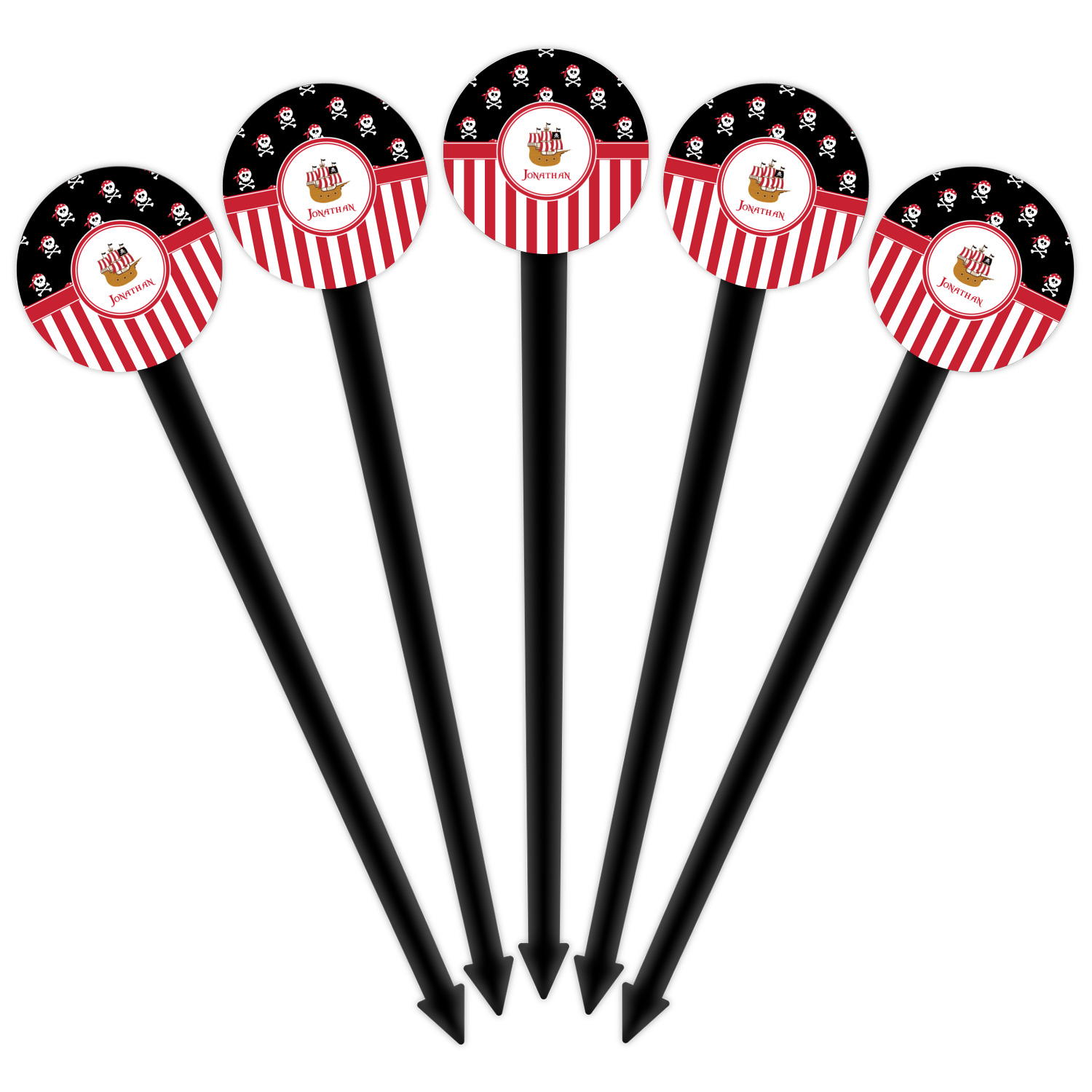 Pirate Ship Designs for 6" Round Plastic Food Picks - Black - Single-Sided