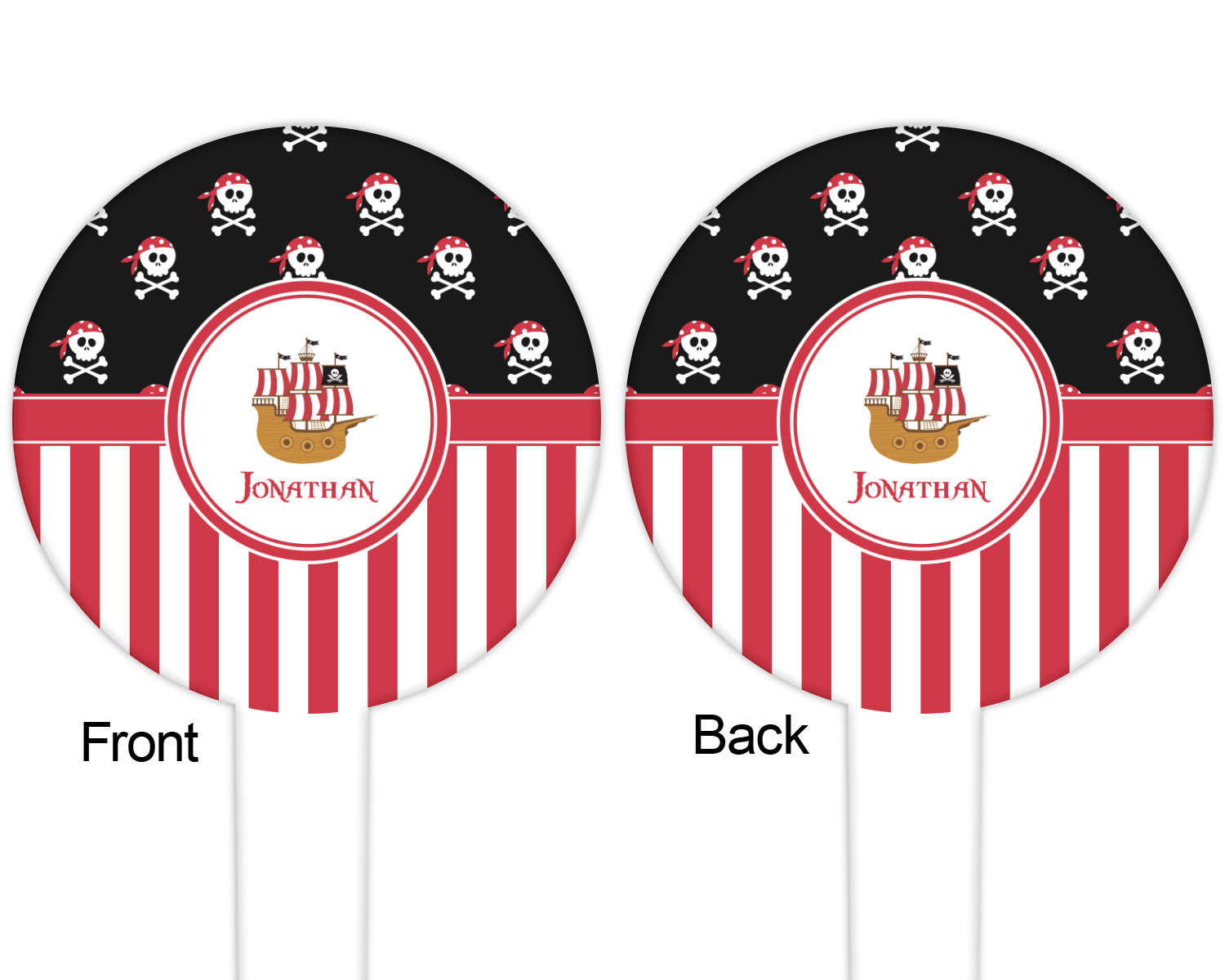 Pirate Ship Designs for 6" Round Plastic Food Picks - White - Double-Sided