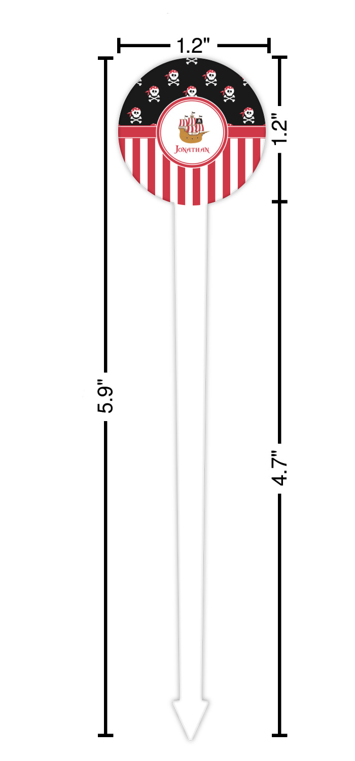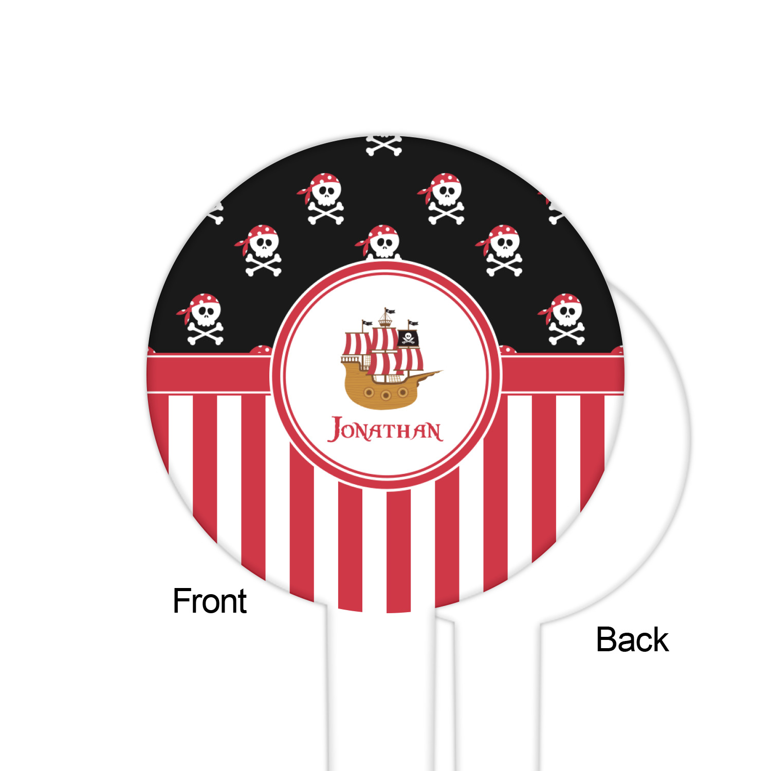 Pirate Ship Designs for 6" Round Plastic Food Picks - White - Single-Sided