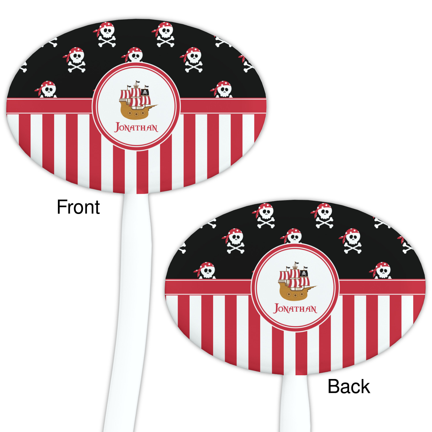 Pirate Ship Designs for 7" Oval Plastic Stir Sticks - White - Double-Sided