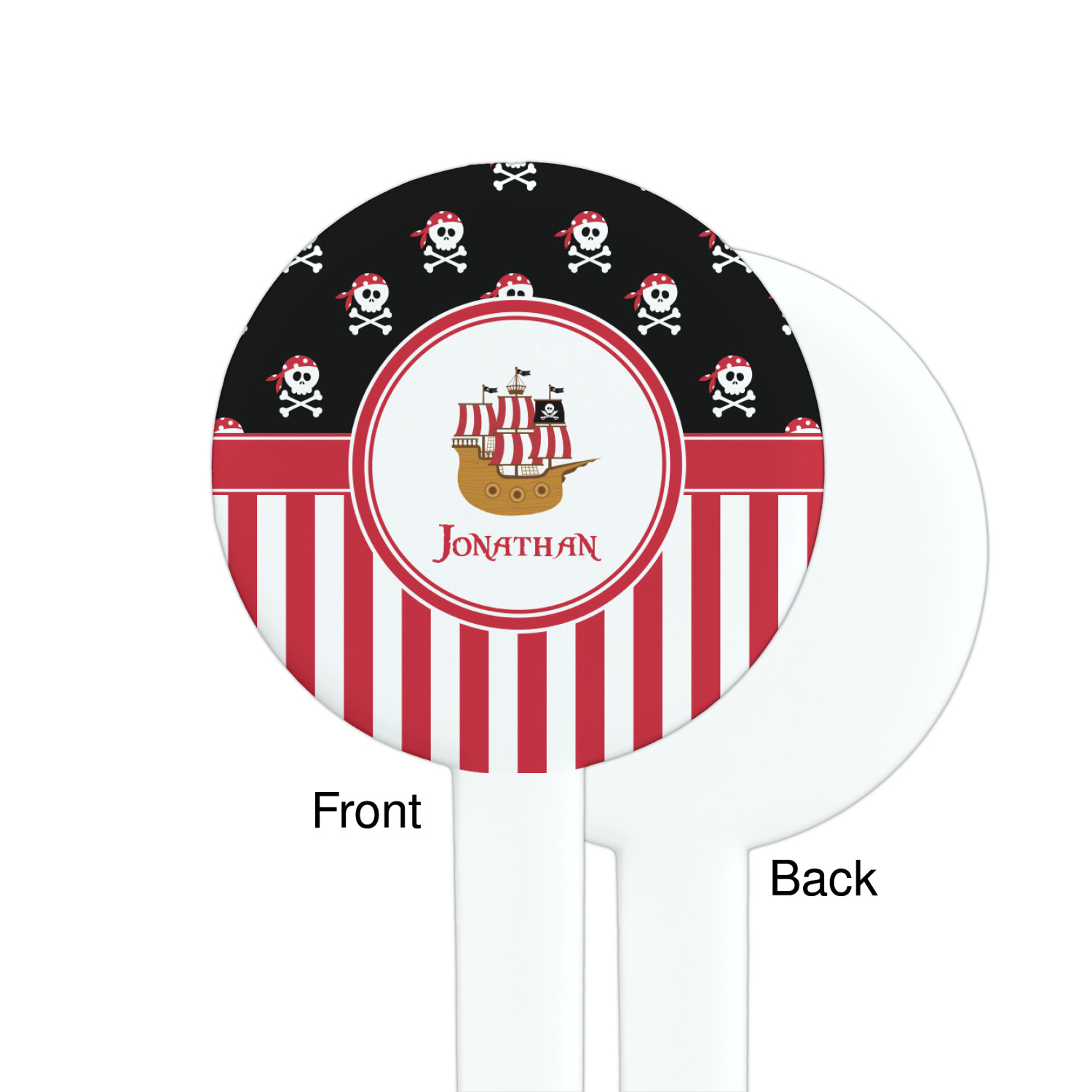 Pirate Ship Designs for 7" Round Plastic Stir Sticks - White - Single-Sided
