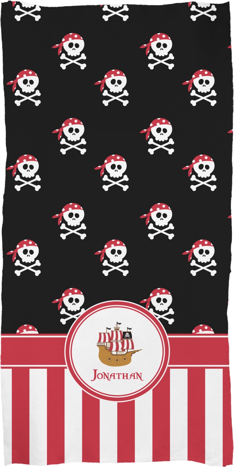 These customized bath towels are slightly larger than your standard towel and are the ideal size for wrapping around your body. They measure approximately 60" x 30". Your customization is displayed across the entire front face of the towel, while the back is white.