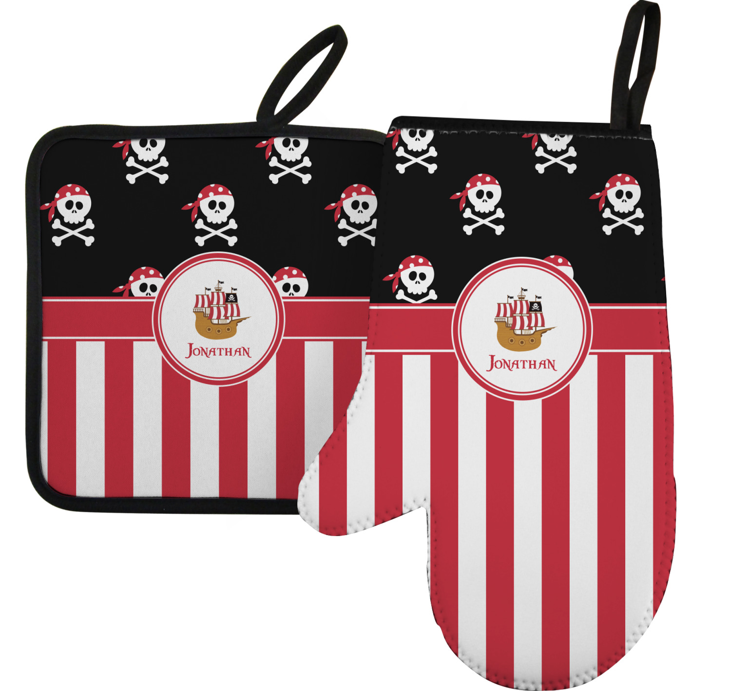Pirate Ship Designs for Left Oven Mitt & Pot Holder Sets
