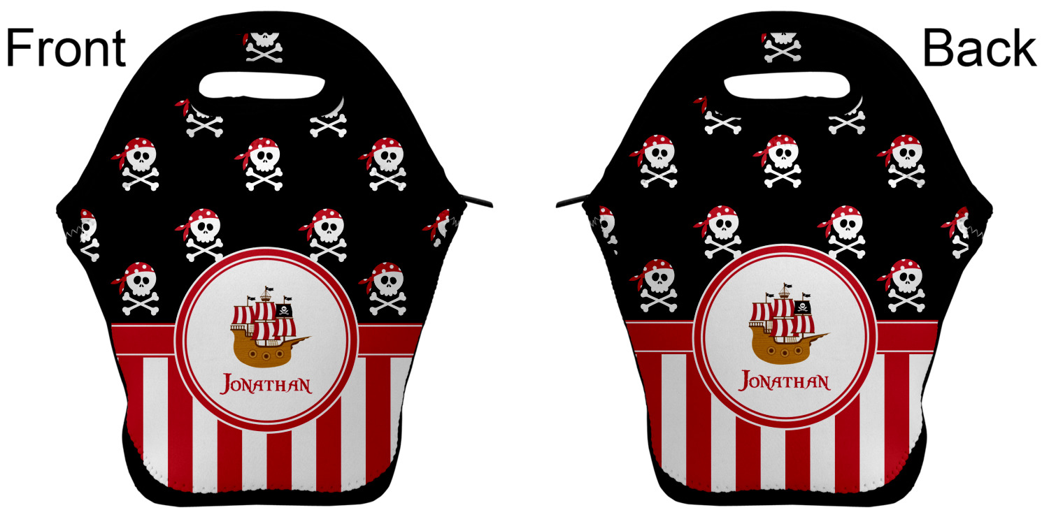 Our personalized lunch bags are made from a strong neoprene, and secure with a zipper closure that lines the top of the bag.The edges of the neoprene are sewn together with a heavy duty stitch, adding to the durability of the bag. The is accompanied by a reinforced handle at its top, for the easy transport of your lunch. We display your personalization across both the front and back of this neoprene lunch bag, while the remaining sides are a sleek black in color. Each bag measures at 13.5 inches tall, and 11.5 inches wide.