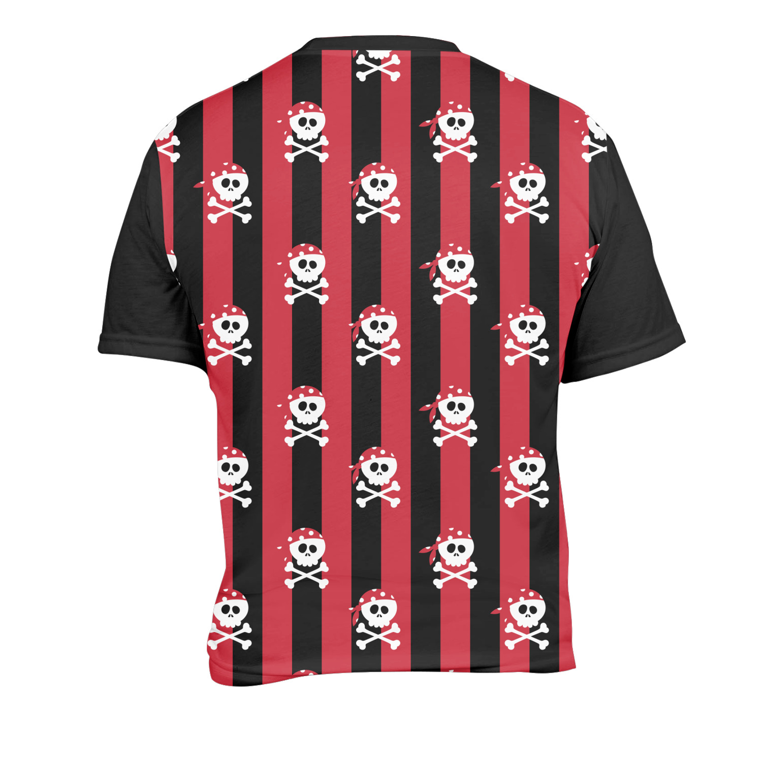 Pillage and plunder is the name of the game with this pirate design. Set on a backdrop of black, the skull and crossbones, sporting red and white polka dot dew rags, are the showcase in this design. A coordinating red and white striped pattern on the bottom that has been taken from the sails of the ship tie the entire design together. A wide band of red trimmed in white bring these classic colors together.