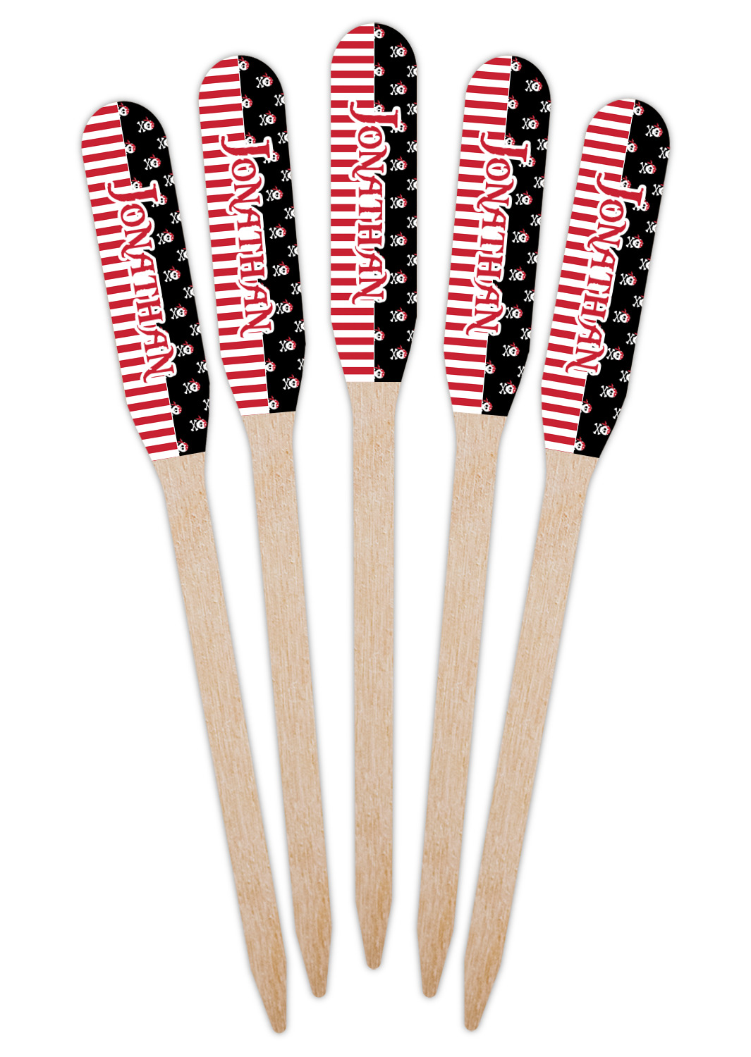 Our paddle style food & drink picks are available in 2 print styles - single sided and double sided.