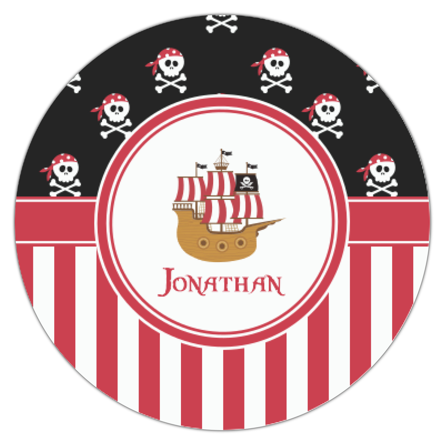 A circle label will have your little pirate imagining he or she is looking through a telescope seeing a pirate ship in the distance. Add personalization to bring this entire design to life.