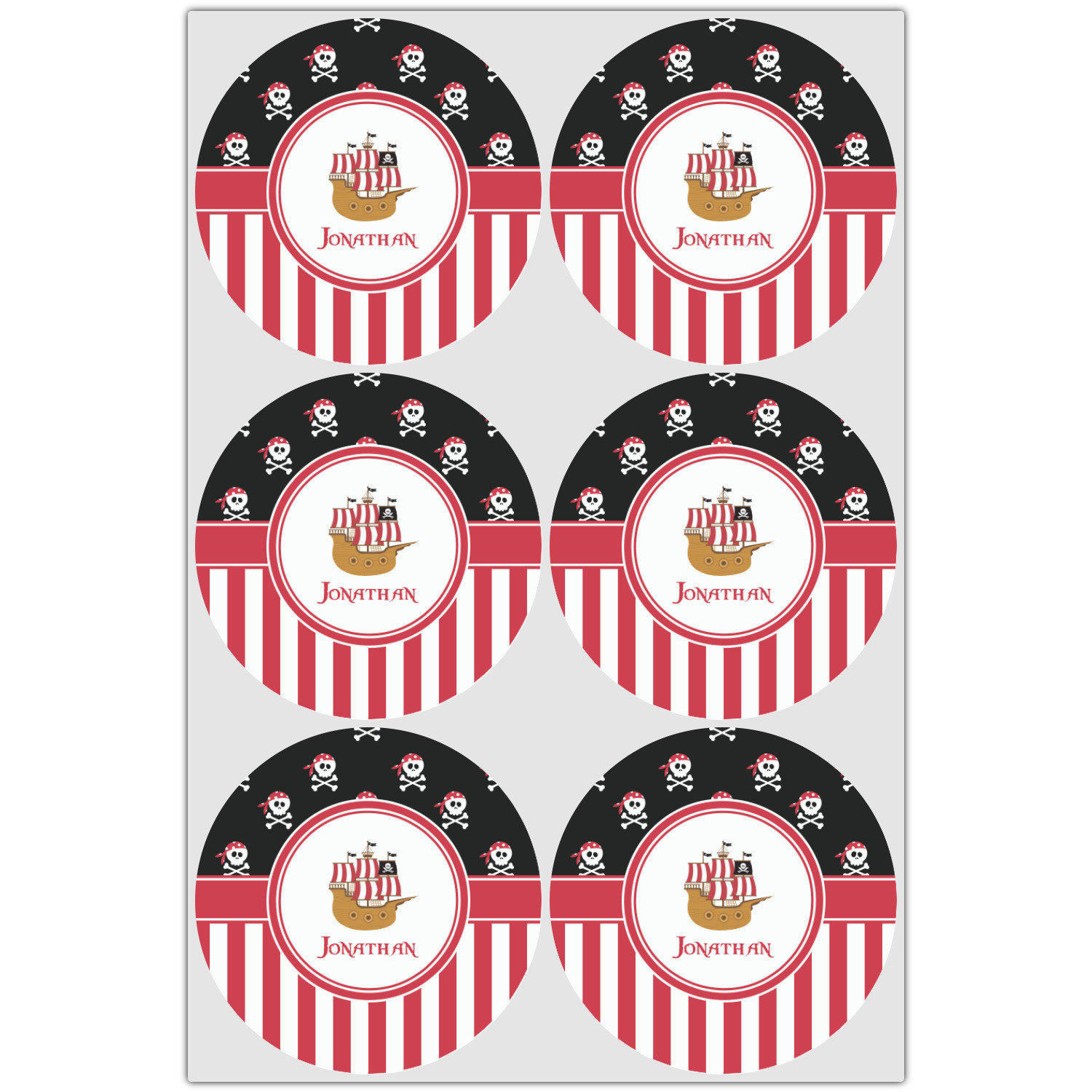 A circle label will have your little pirate imagining he or she is looking through a telescope seeing a pirate ship in the distance. Add personalization to bring this entire design to life.
