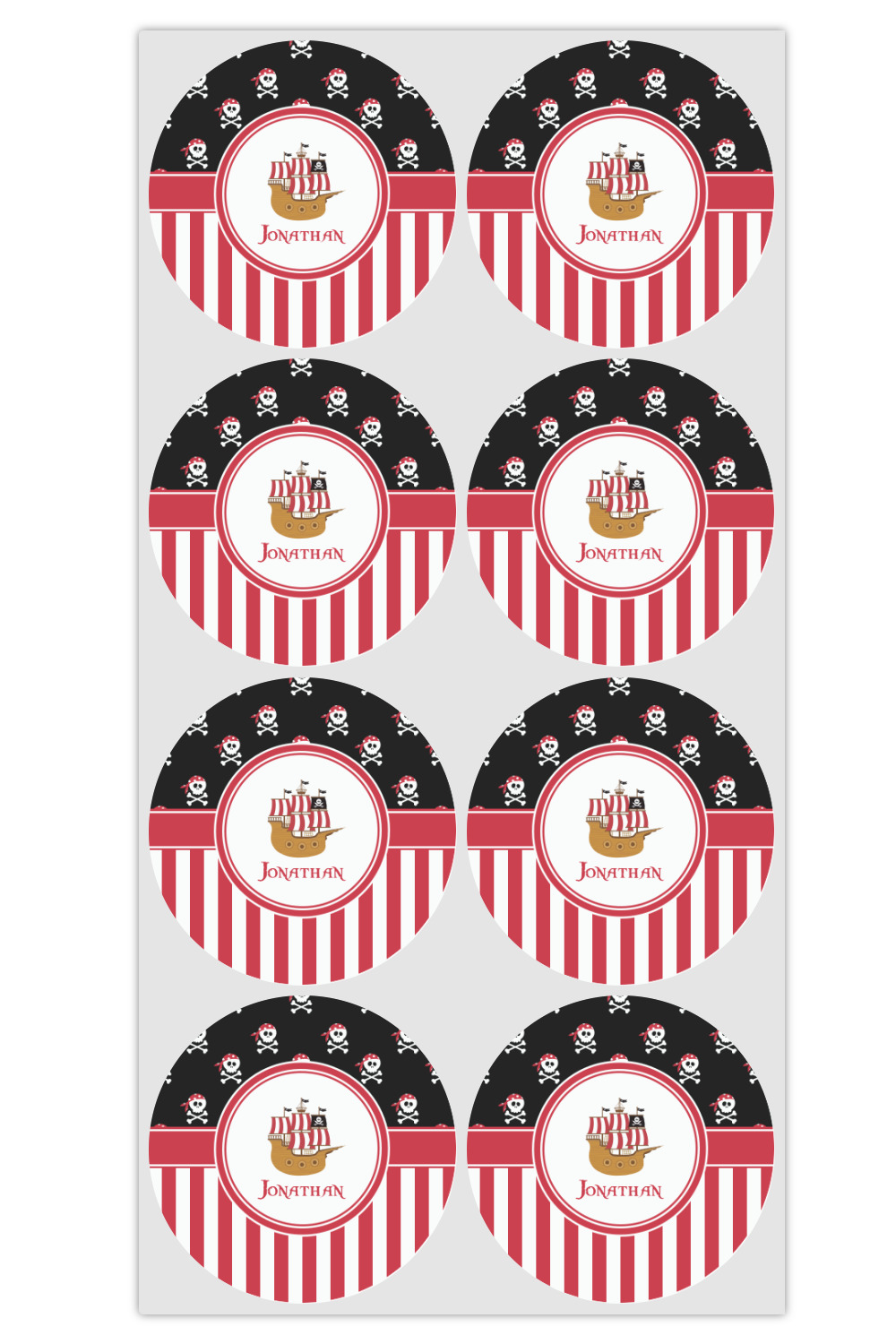 A circle label will have your little pirate imagining he or she is looking through a telescope seeing a pirate ship in the distance. Add personalization to bring this entire design to life.
