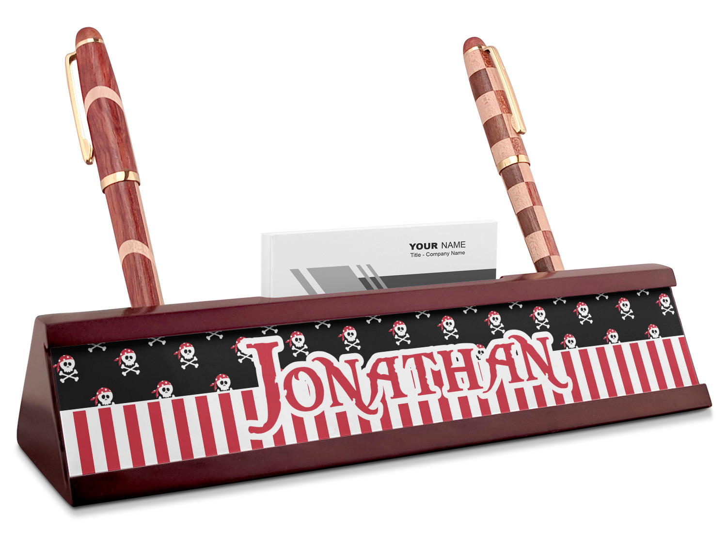 Pirate Ship Designs for Red Mahogany Nameplates with Business Card Holder