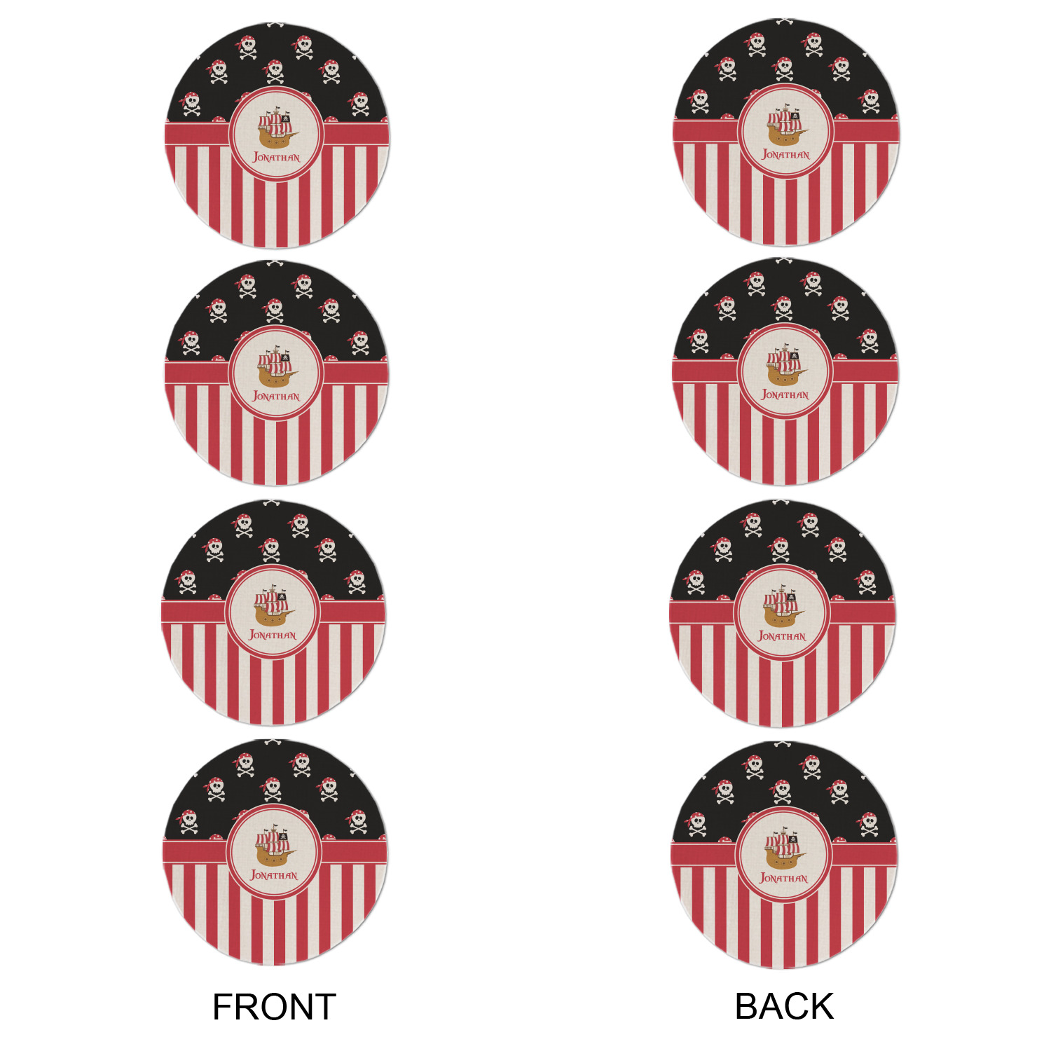 Pirate Ship Designs for Round Linen Placemats - Double-Sided - Set of 4