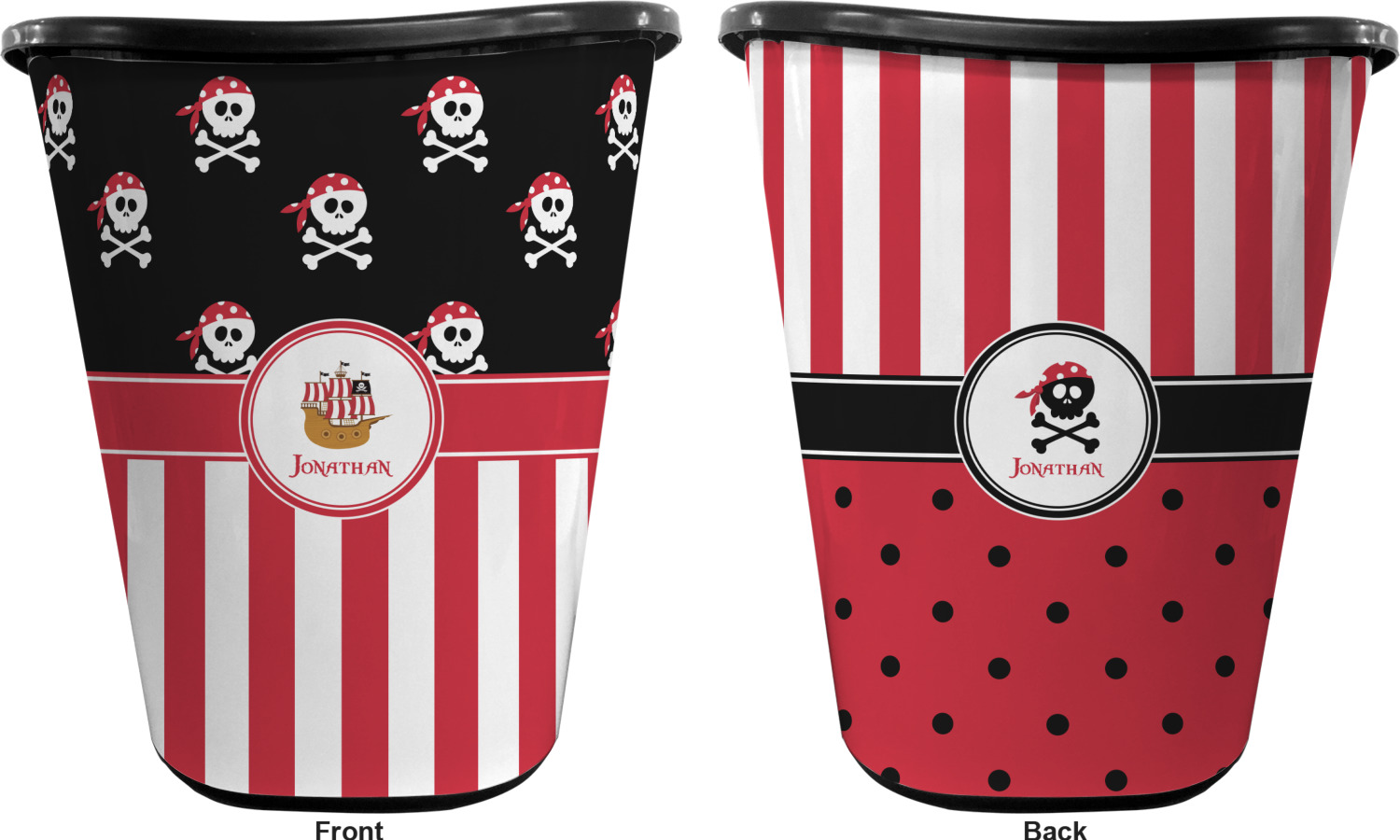 Pirate Ship Designs for Waste Baskets - Double-Sided - Black
