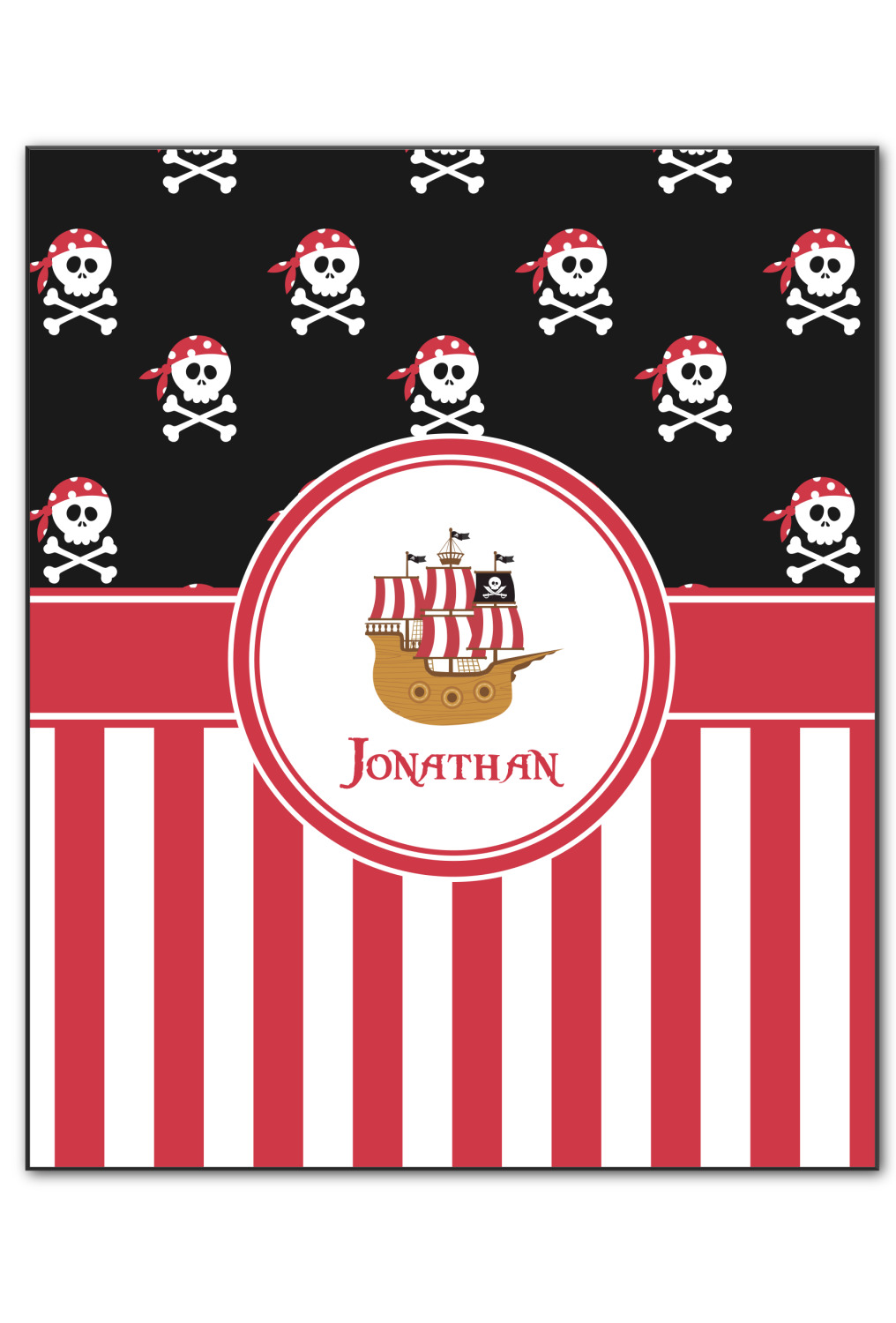 Pillage and plunder is the name of the game with this pirate design. Set on a backdrop of black, the skull and crossbones, sporting red and white polka dot dew rags, are the showcase in this design. A coordinating red and white striped pattern on the bottom that has been taken from the sails of the ship tie the entire design together. A wide band of red trimmed in white bring these classic colors together.
