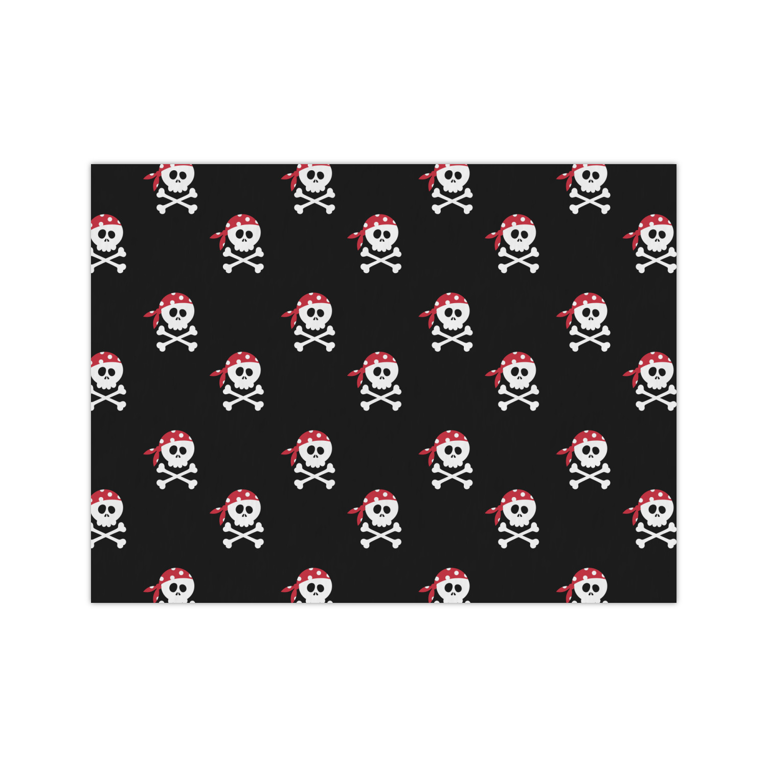 Pillage and plunder is the name of the game with this pirate design. Set on a backdrop of black, the skull and crossbones, sporting red and white polka dot dew rags, are the showcase in this design. A wide band of red trimmed in white bring these classic colors together.