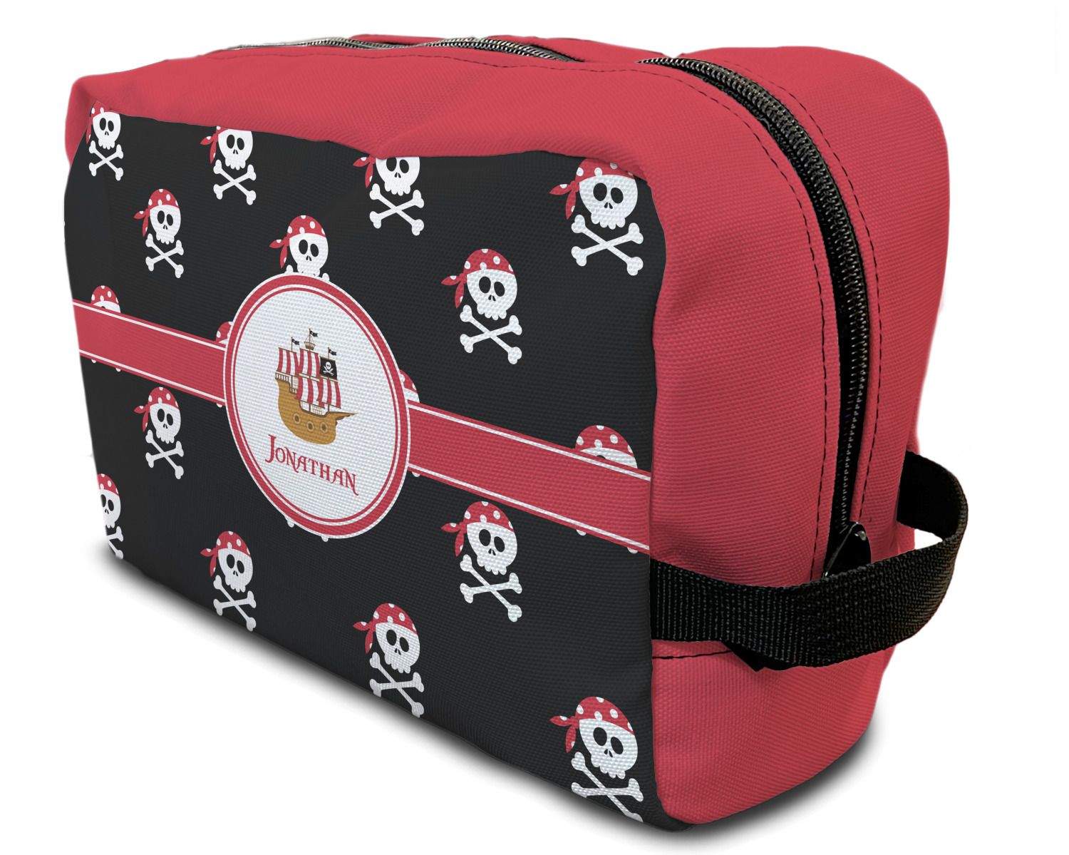 Our toiletry bag has the traditional dopp kit design i.e. a side to side zippered closure, giving you easy access to all the contents inside and a sturdy handle on one side of the bag. The canvas fabric for dopp kits is printed, then cut and sewn here in the USA.