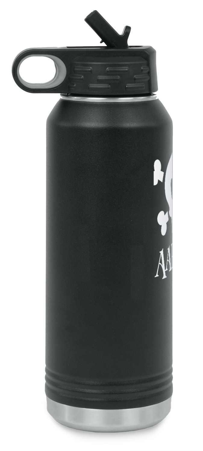 These 32 oz. water bottles are constructed from 18/8 durable food grade stainless steel. The inside of the water bottle is silver; while the outside is powder coated black