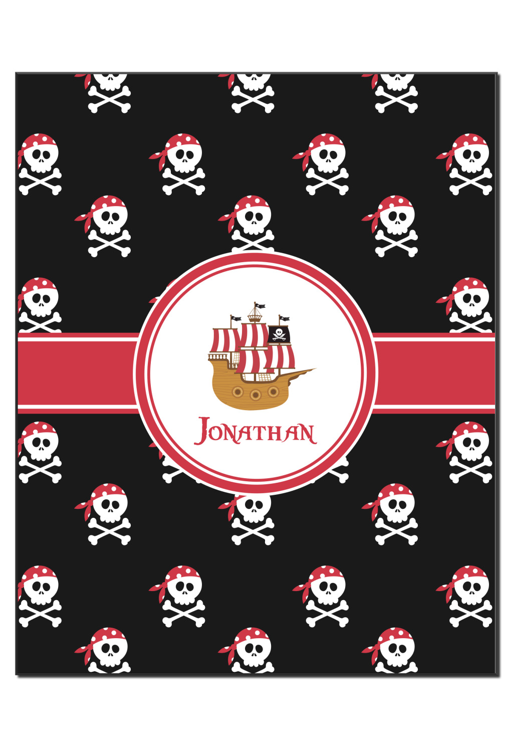 Pillage and plunder is the name of the game with this pirate design. Set on a backdrop of black, the skull and crossbones, sporting red and white polka dot dew rags, are the showcase in this design. A wide band of red trimmed in white bring these classic colors together.