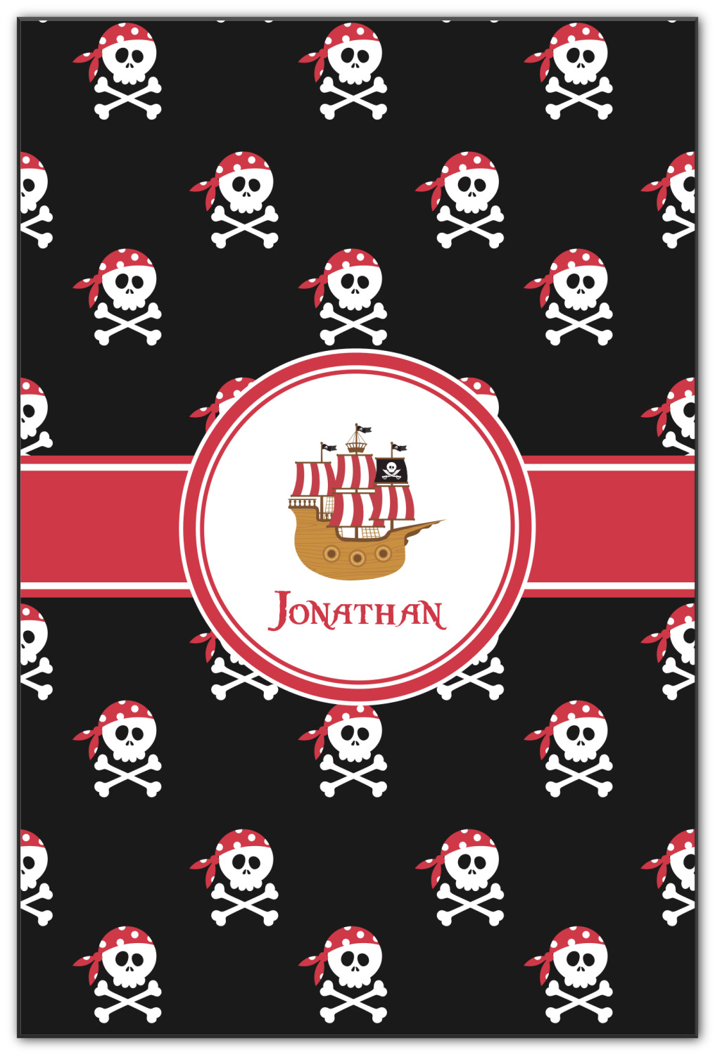 Pillage and plunder is the name of the game with this pirate design. Set on a backdrop of black, the skull and crossbones, sporting red and white polka dot dew rags, are the showcase in this design. A wide band of red trimmed in white bring these classic colors together.
