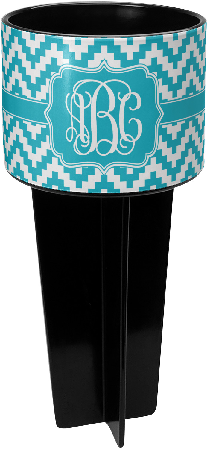 This cup holder has a large stake at its bottom that anchors it to the sand or ground below, while the cup holder rests above the stake. The entire drink holder is made of durable plastic and displays your customization around the cup holder portion. We sell these personalized beach spikers in two different colors: black and white.