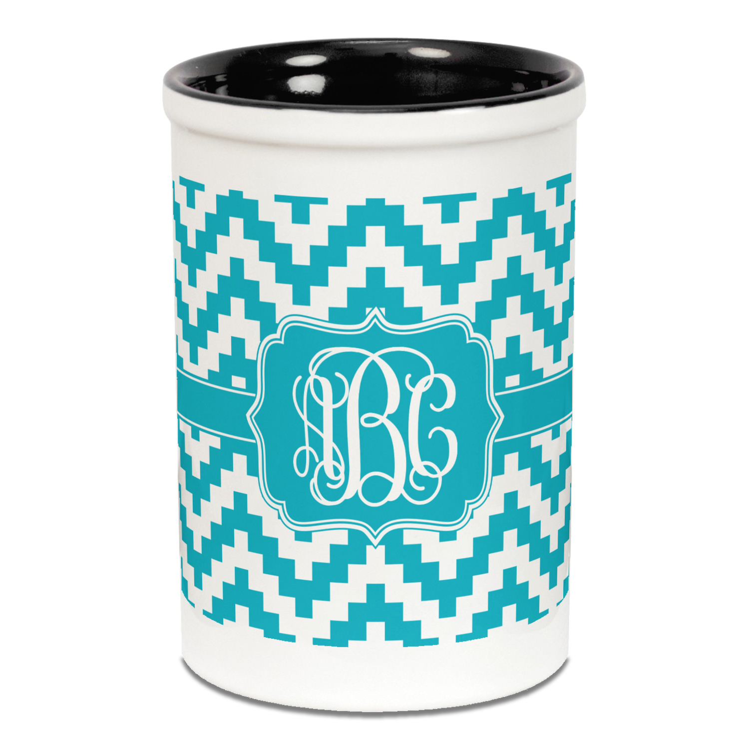 Pixelated chevron stripe is at the tipping point of cool designs. I used the teal color to create the design as it is also one of my favorite colors, however, the design is available in multiple colors. The center has a classic ribbon and I used the decorative label filled in teal with the interlocking monogram in white!