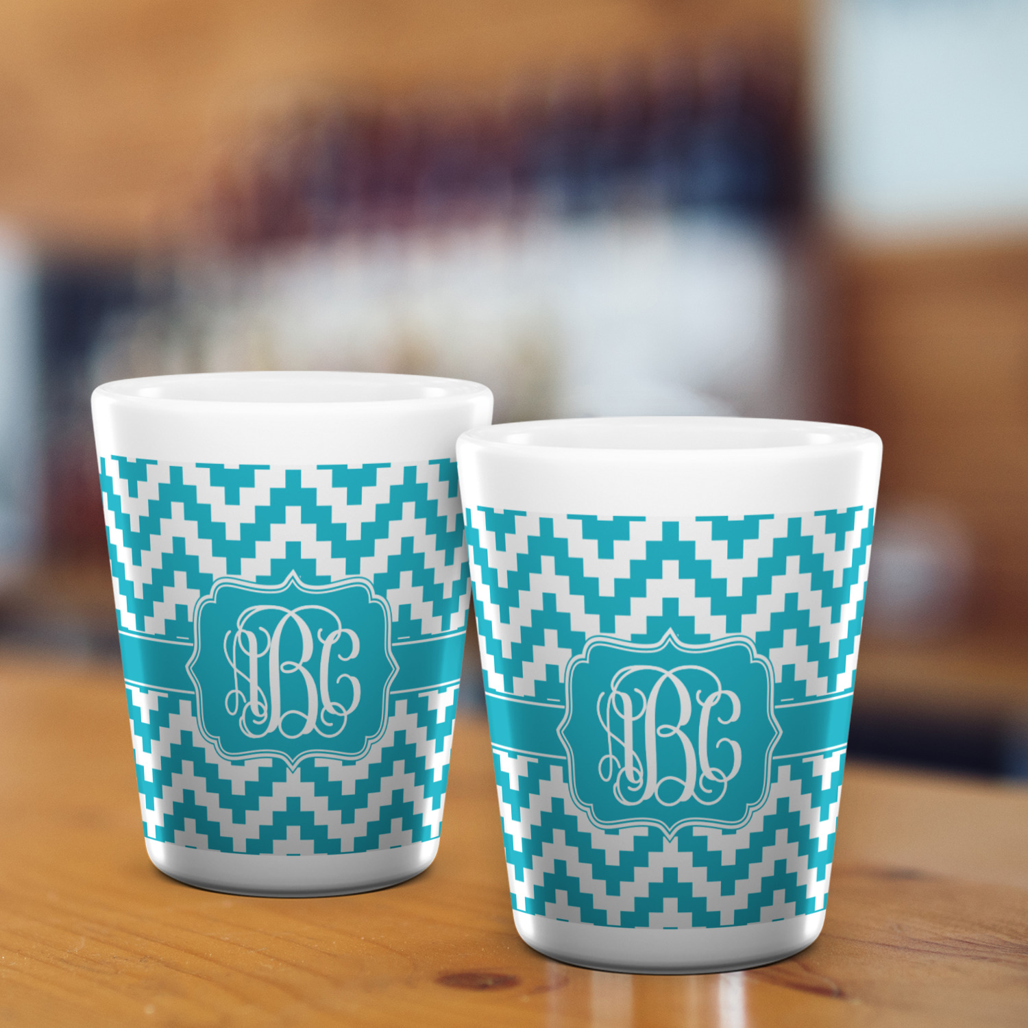 Made from ceramic these shot glasses are printed in full color with the design of your choice. These are a standard 1.5oz size and stand 2.25" tall. Available in a full white ceramic or a two-tone with a black color inside the shot glass. Buy a single or a set of 4, all of which can be designed separately to get you just what you want and need.
