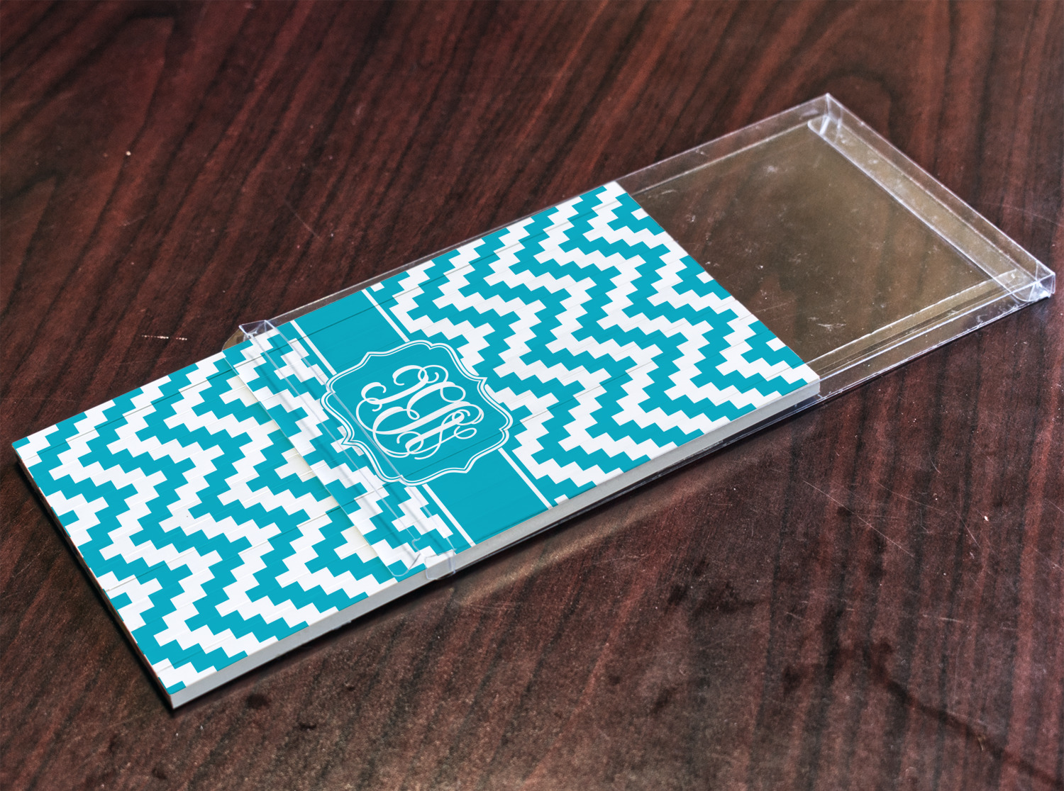 Pixelated chevron stripe is at the tipping point of cool designs. I used the teal color to create the design as it is also one of my favorite colors, however, the design is available in multiple colors. The center has a classic ribbon and I used the decorative label filled in teal with the interlocking monogram in white!