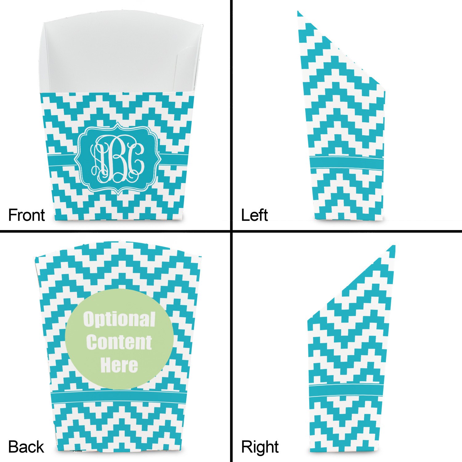 These favor boxes are printed in full color on quality cardstock - so coordinating the french fry favor boxes to match your event's themes or colors should be a breeze. You can upload your own design including artwork, logos or photos