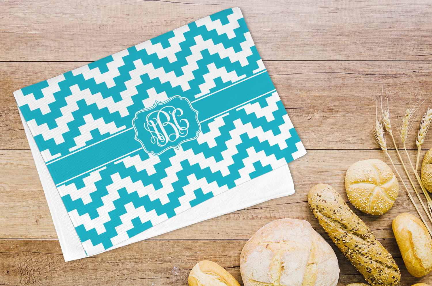 Pixelated chevron stripe is at the tipping point of cool designs. I used the teal color to create the design as it is also one of my favorite colors, however, the design is available in multiple colors. The center has a classic ribbon and I used the decorative label filled in teal with the interlocking monogram in white!