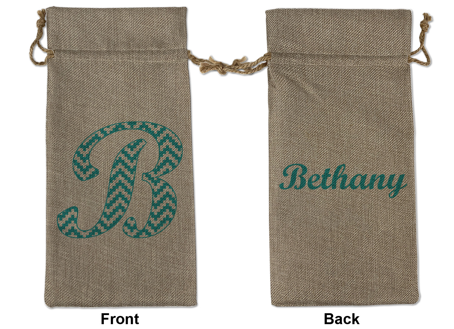 We sell our Burlap Gift Bags in 3 variant sized bags. Made with burlap polyester, each personalized bag can be secured with a twine drawstring pull. Your custom design is available to print on one side or both sides - completely up to you! The sizes of the bags measure approximately 4.5" x 6.5" for the smallest size, 6.5" x 8.0" for the medium size, and 6.5" x 13.5" for the large-sized bag.
