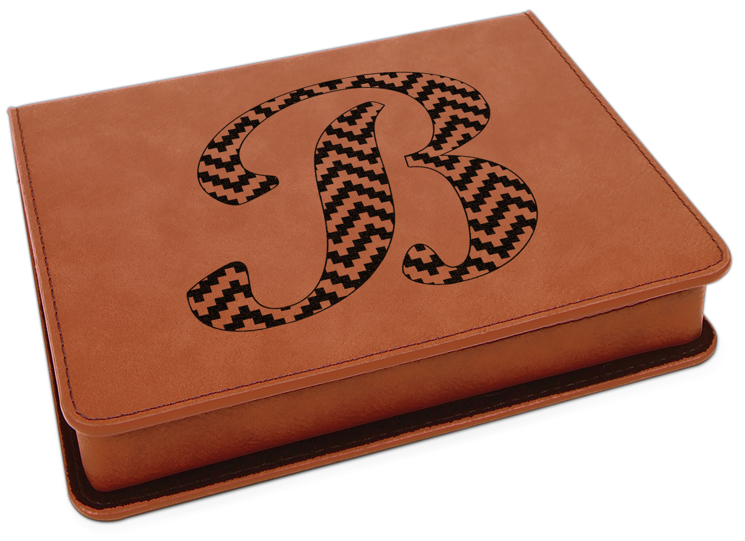 This set includes a wine stopper, pourer, drip ring, and a corkscrew! The exterior of the box is a gorgeous, cognac-brown leatherette, while the interior is covered in a black, velvety material. Four foam indentations, unique to the shape of the wine tool, are found at the bottom half of the box's interior. The tools fit snugly into each of their designated spots, and the foam material helps to protect the integrity of your tools. Each of the wine gadgets features a bamboo accent, with the location and style depending on the tool itself. We laser engrave your personalized design onto the lid of the box, which easily flips open and is secured closed by a small magnet. The wine accessories box measures at 7 by 5.5 inches in total.