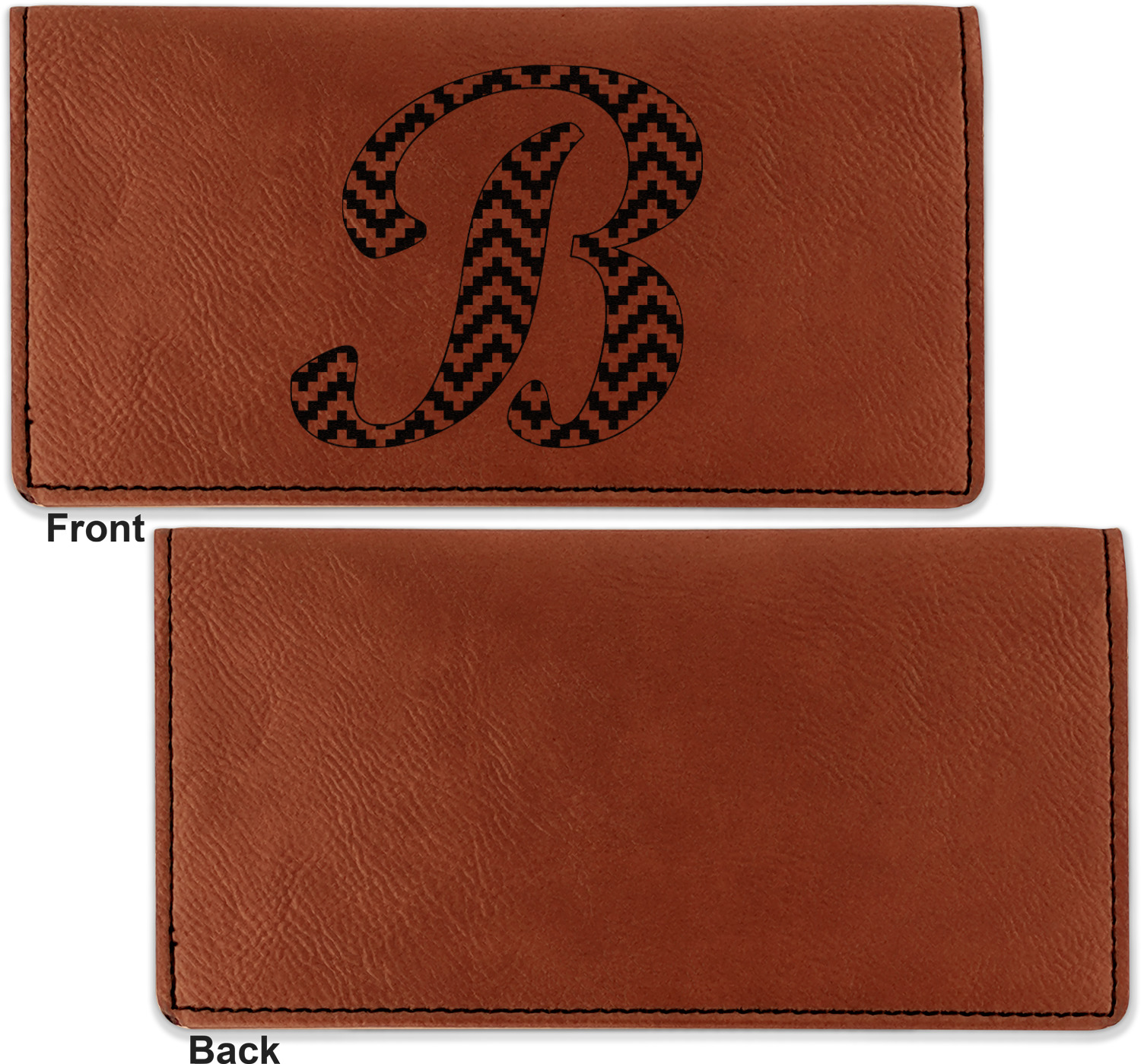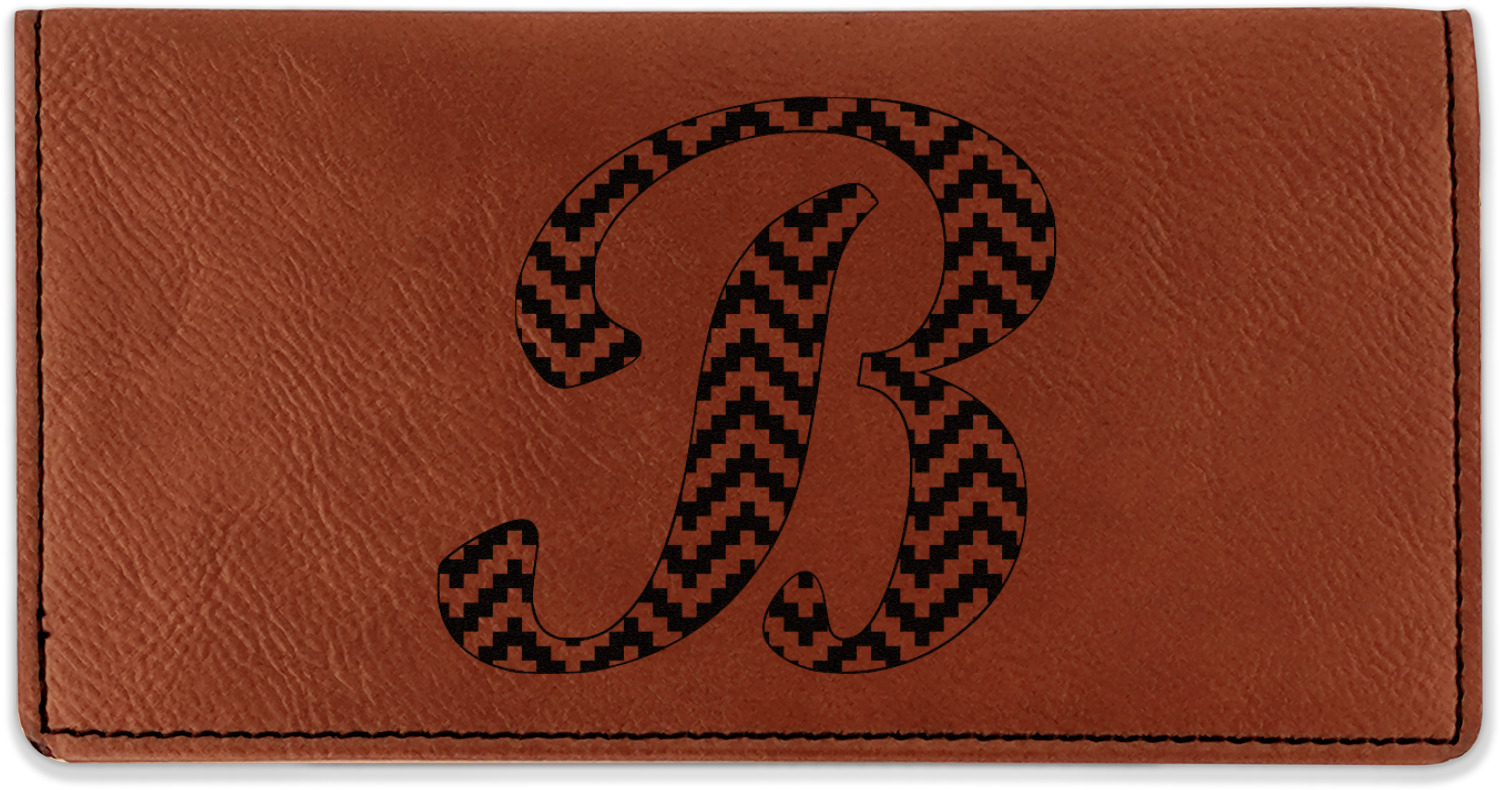 Go into our design center to start personalizing. Your checkbook cover will be laser engraved, making the graphic or text a black color. Choose a fun saying, monogram, or font to go on your checkbook cover. You have the opportunity to do it double or single sided.