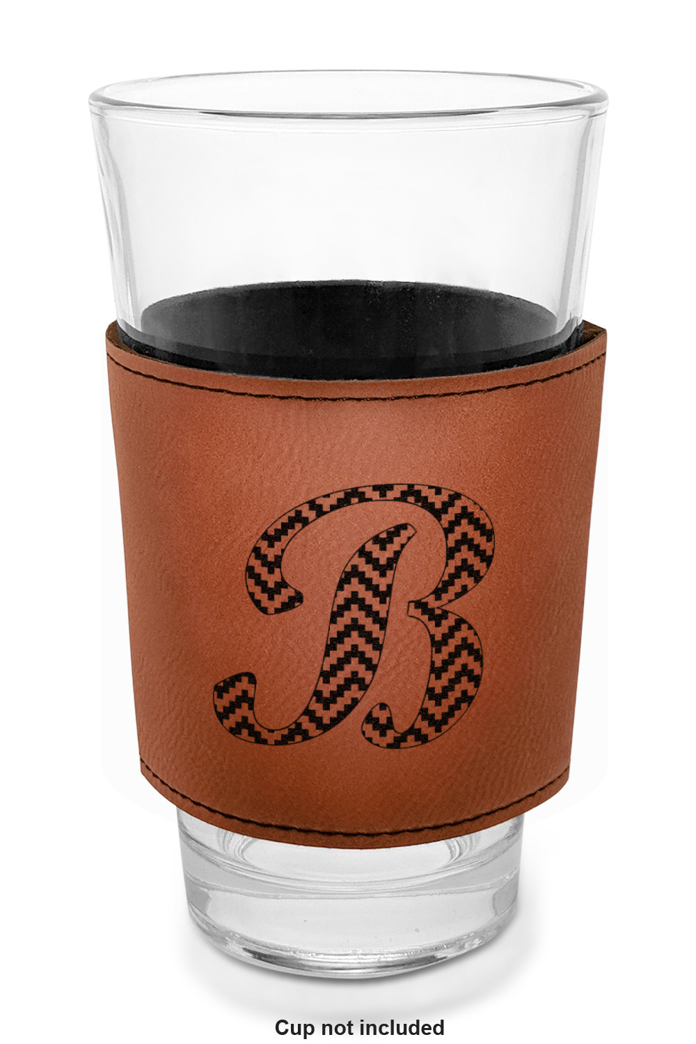 This cup sleeve is made from a suave, cognac-brown leatherette and finished with an intricate, black stitch. The interior of this can sleeve is fabricated from a thin foam material to help insulate your mug's contents. The sleeve is specifically made to suit tapered glasses or mugs, so the top's diameter is 3.5 inches, while the bottom's diameter is 2.75 inches. Your customized design will be laser engraved into the leatherette, leaving behind crisp, black imprint. With these products, we provide you with the option of engraving the front and back, or the front only.