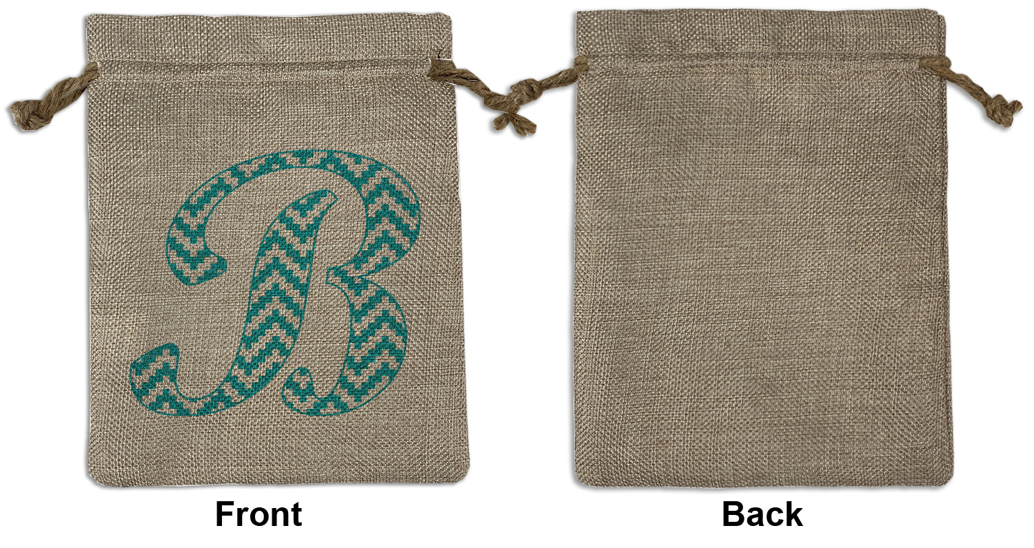 We sell our Burlap Gift Bags in 3 variant sized bags. Made with burlap polyester, each personalized bag can be secured with a twine drawstring pull. Your custom design is available to print on one side or both sides - completely up to you! The sizes of the bags measure approximately 4.5" x 6.5" for the smallest size, 6.5" x 8.0" for the medium size, and 6.5" x 13.5" for the large-sized bag.