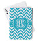 The customization / personalization is printed on the back side. The playing cards have a low gloss coating on both sides. The cards are packaged in a clear plastic box.