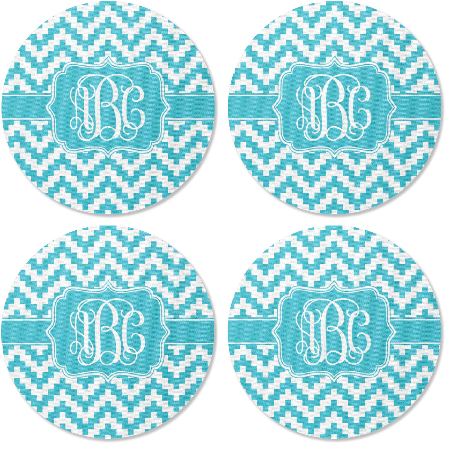 Pixelated chevron stripe is at the tipping point of cool designs. I used the teal color to create the design as it is also one of my favorite colors, however, the design is available in multiple colors. The center has a classic ribbon and I used the decorative label filled in teal with the interlocking monogram in white!