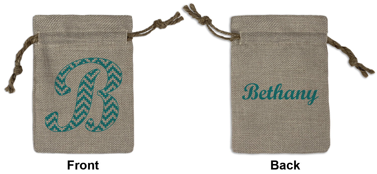 We sell our Burlap Gift Bags in 3 variant sized bags. Made with burlap polyester, each personalized bag can be secured with a twine drawstring pull. Your custom design is available to print on one side or both sides - completely up to you! The sizes of the bags measure approximately 4.5" x 6.5" for the smallest size, 6.5" x 8.0" for the medium size, and 6.5" x 13.5" for the large-sized bag.