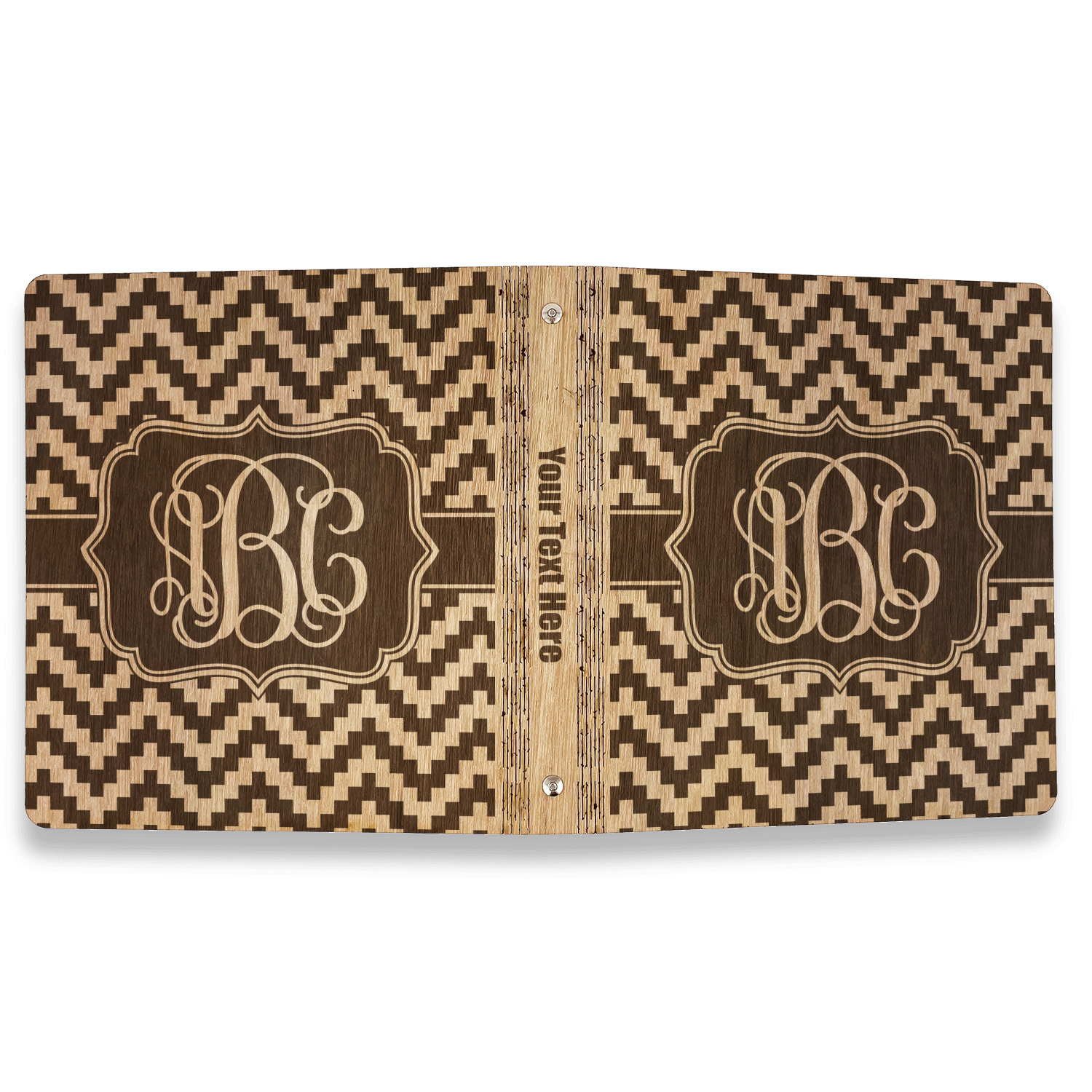 Made from premium hardwood, these are laser engraved then polished with wax to give a nice sheen and smooth feel to the product. The inside of the binders are finished with a faux leather material which is bonded to the inside of the wood to strengthen the wood and give the inside the same refined finish. The rustic brown and gold leather material adds a nice classic touch to the binders.