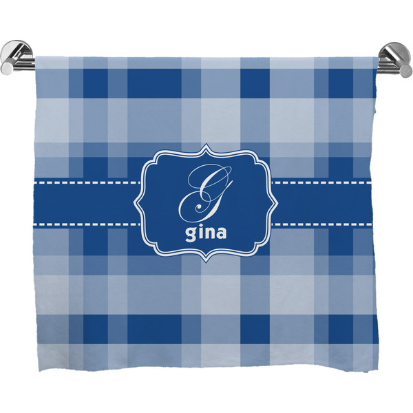These customized bath towels are slightly larger than your standard towel and are the ideal size for wrapping around your body. They measure approximately 60" x 30". Your customization is displayed across the entire front face of the towel, while the back is white.