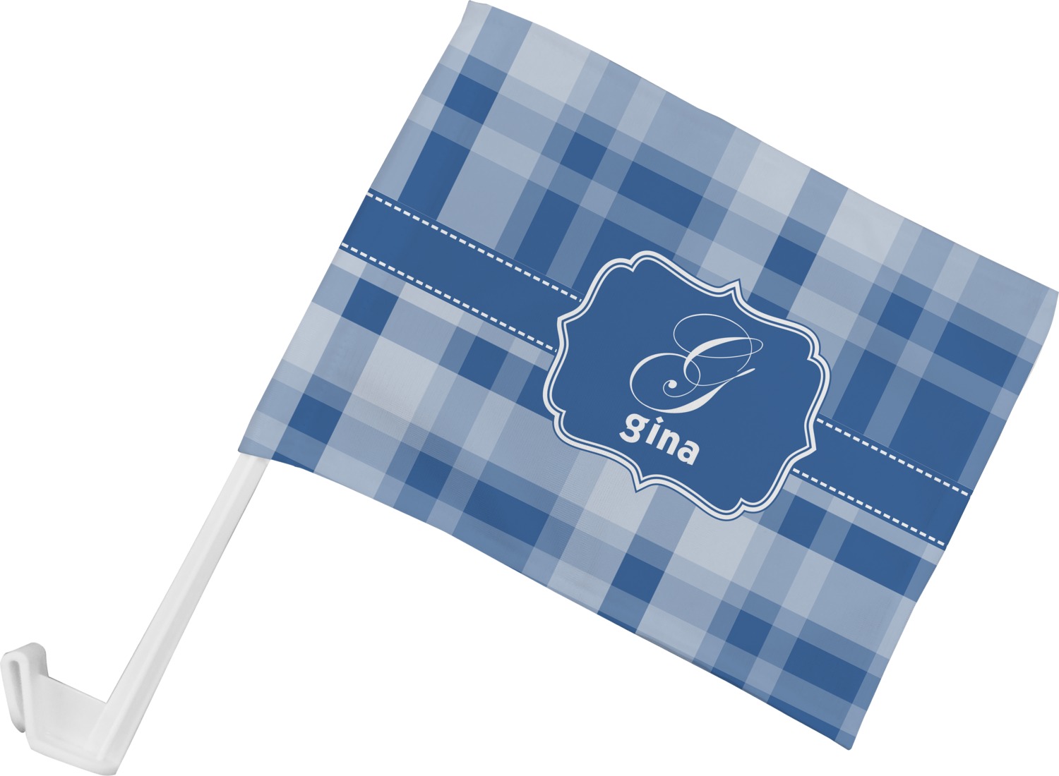 Our personalized flags are made from a durable, yet lightweight cloth that will proudly bear your logo or design of choice, while withstanding the outside elements. We have two size options - 8" x 11" and 11" x 15". Both come with a flag pole which includes a clip that secures the pole to the side window, whether it is rolled up or down. The flags are printed on both sides to display your design from all directions.