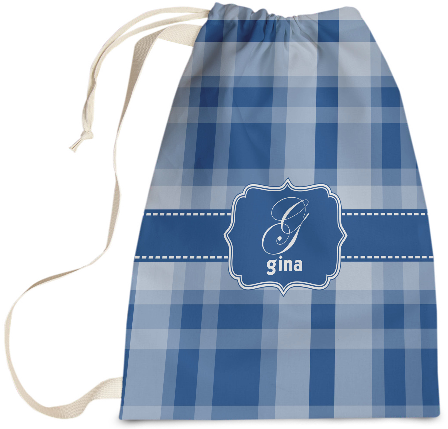 Carry your laundry in style with these customized laundry bags. Available in two sizes, featuring a natural colored woven strap and a cinch cord, these bags hold a lot of clothes or anything else you want to fit in them.