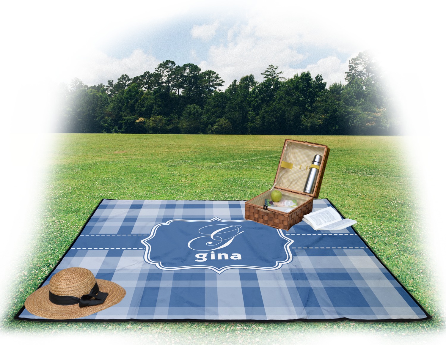 This picnic blanket is perfect for hanging out with your friends at the park or anywhere outside. The top of the blanket is made of a super soft microfiber fleece. The bottom of the blanket is made of a black material similar to a rain jacket and is water repellent as well. This will keep any wet spots on the ground from soaking through your picnic blanket. No one likes a wet blanket. The blanket measures at approximately 50" x 59" and has a nicely finished ribbon edge.