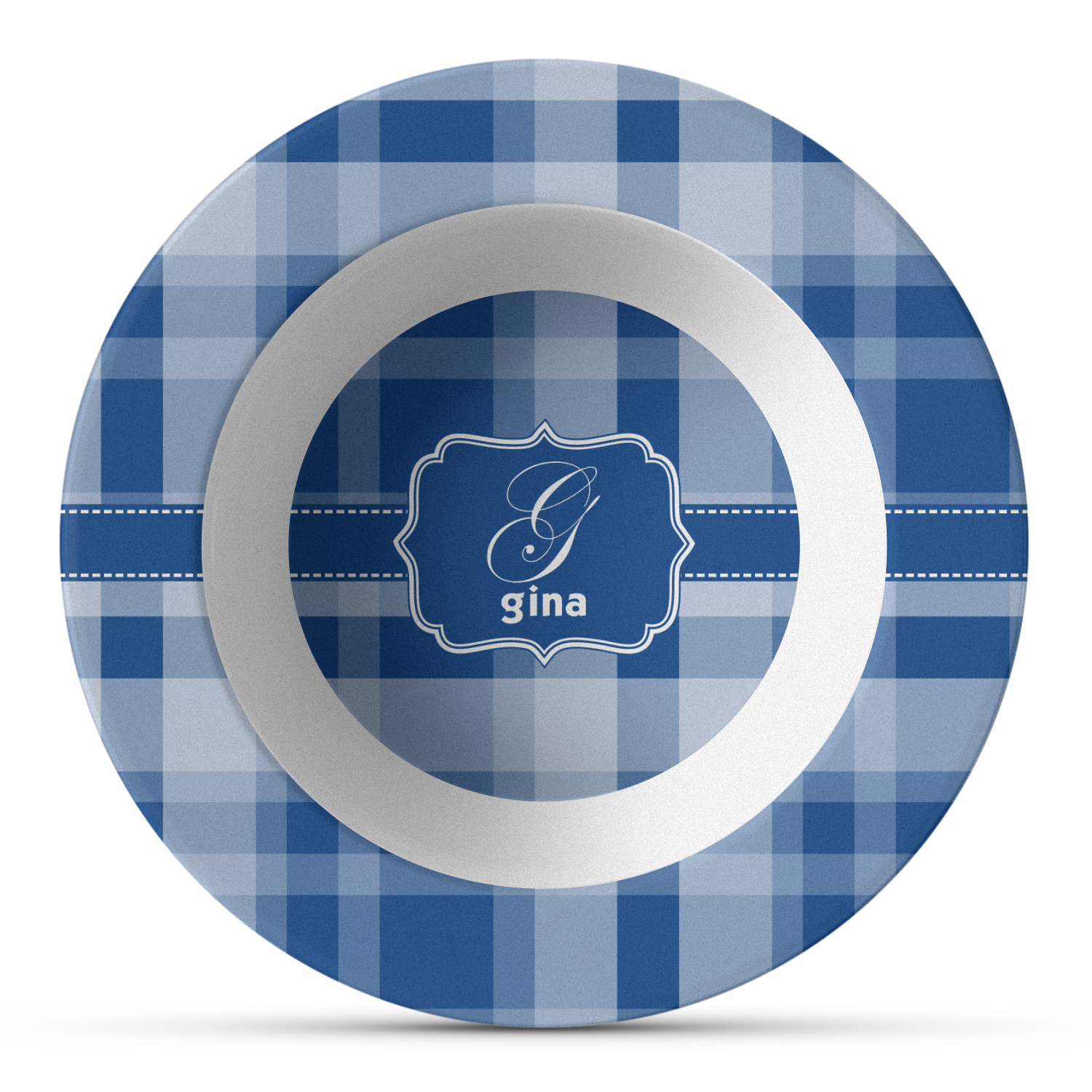 Made from a composite, thermo-set, polymer plastic, these dinner bowls have the versatility, durability, and weight of a melamine bowl without any of the downsides of melamine. Unlike melamine dinnerware, these bowls can withstand high heat. These custom plastic bowls can even handle temperatures of up to 250 degrees Fahrenheit, for up to 60 minutes. The pieces of our plastic dinner set are never made with harmful chemicals, such as BPAs, formaldehyde, DEHPs. We display your personalization on the base of this bowl's interior, while the bowl itself has an 8.75" diameter and is 1.75" tall.
