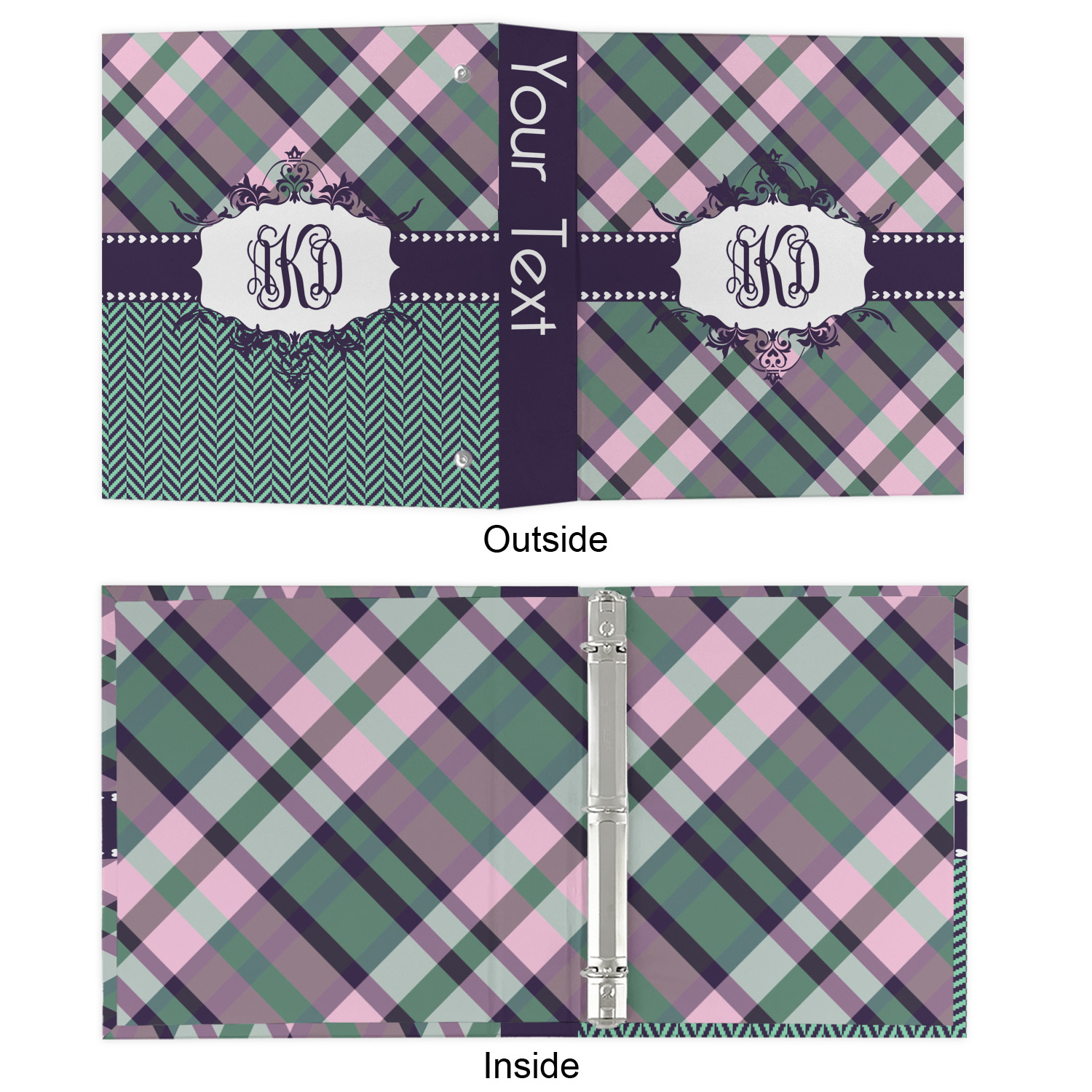Made from a sturdy cardboard base with a full high quality canvas textured vinyl wrap with the design of your choice. Unlike our standard 3-ring binder with the full wrap design your artwork wraps from the front and back and into the inside of the binder.
