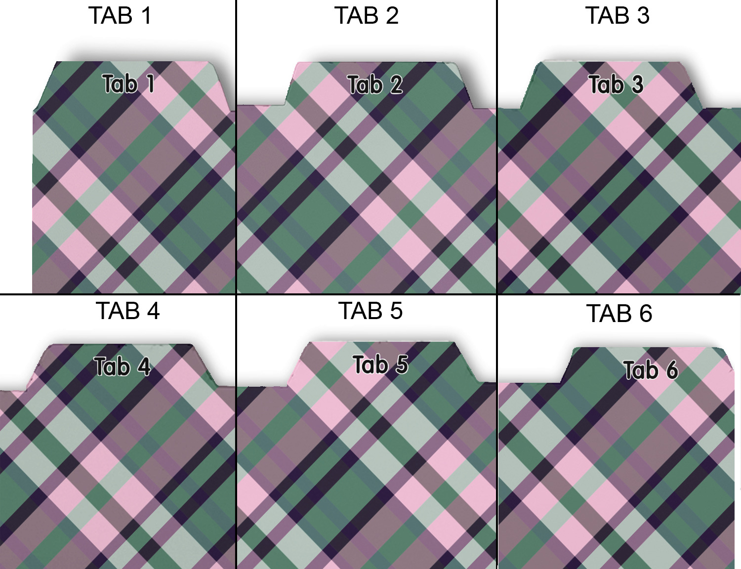 Whether you use binders at school or at work, we have designs to suit all of them. Available in 5 or 6 tab sets, you are sure to find a set to suit your needs. The back of each one is white and can be used to take notes, write vital information on, etc.