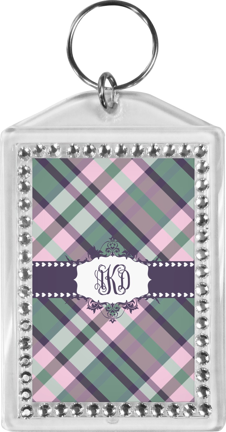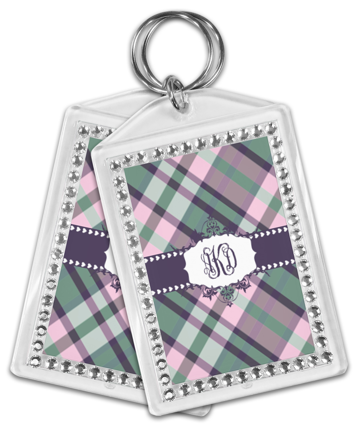 Our personalized keychains have a bold, rectangular shape, outlined by a series of shimmering rhinestones. A metal, split keyring is included with your purchase, and an additional metal hoop allows for attachment of the keychain to the split ring. This unique keychain measures at about 3.75 by 2.5 inches. We print your customized design(s) across both the back and front of this keychain.