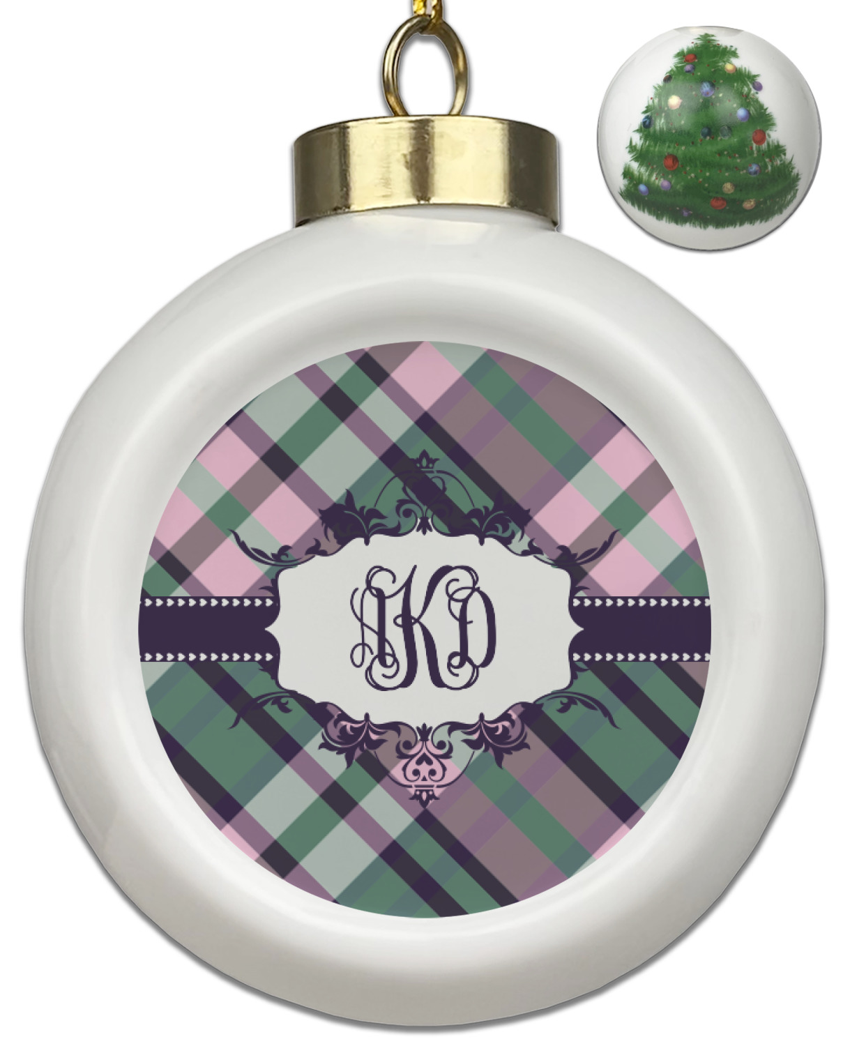 Our Christmas ornaments are a unique ceramic ball shape with a twist as it has a flat face to display your custom design! Select from one of our two design types - Christmas Tree or Poinsettia Garland - to adorn the curved back of your personal design. Each ornament measures 3H x 2.5W x 2D accompanied with a gold string accent for finishing touches to hang on your beautiful Christmas tree!