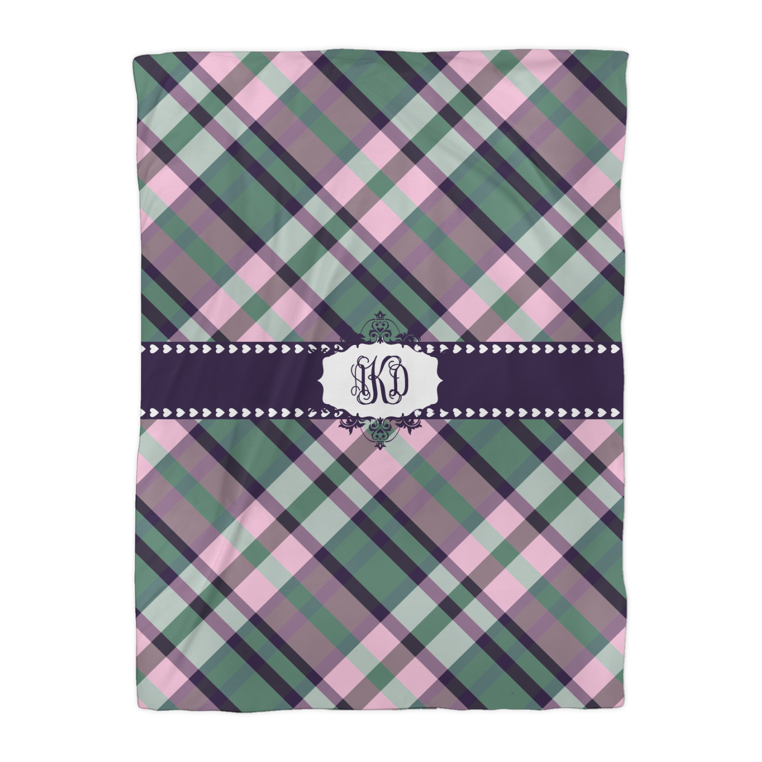 Plaid is a timeless and classic pattern and it is the perfect pattern for any accessory, for any occasion.. Our plaid is completely recolor able - so you can create any color scheme that you want to. Make it feminine by adding pinks and purples or blue and reds to more masculine. We offer 100s of colors to choose from. To showcase our design, we chose a combination of pink and purple, and added a pop of mint - making our plaid very girly.