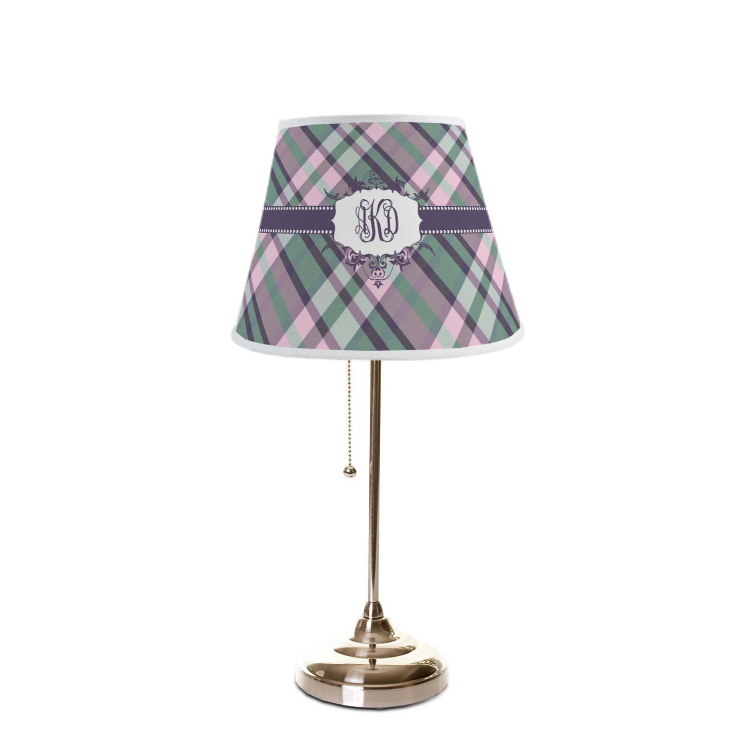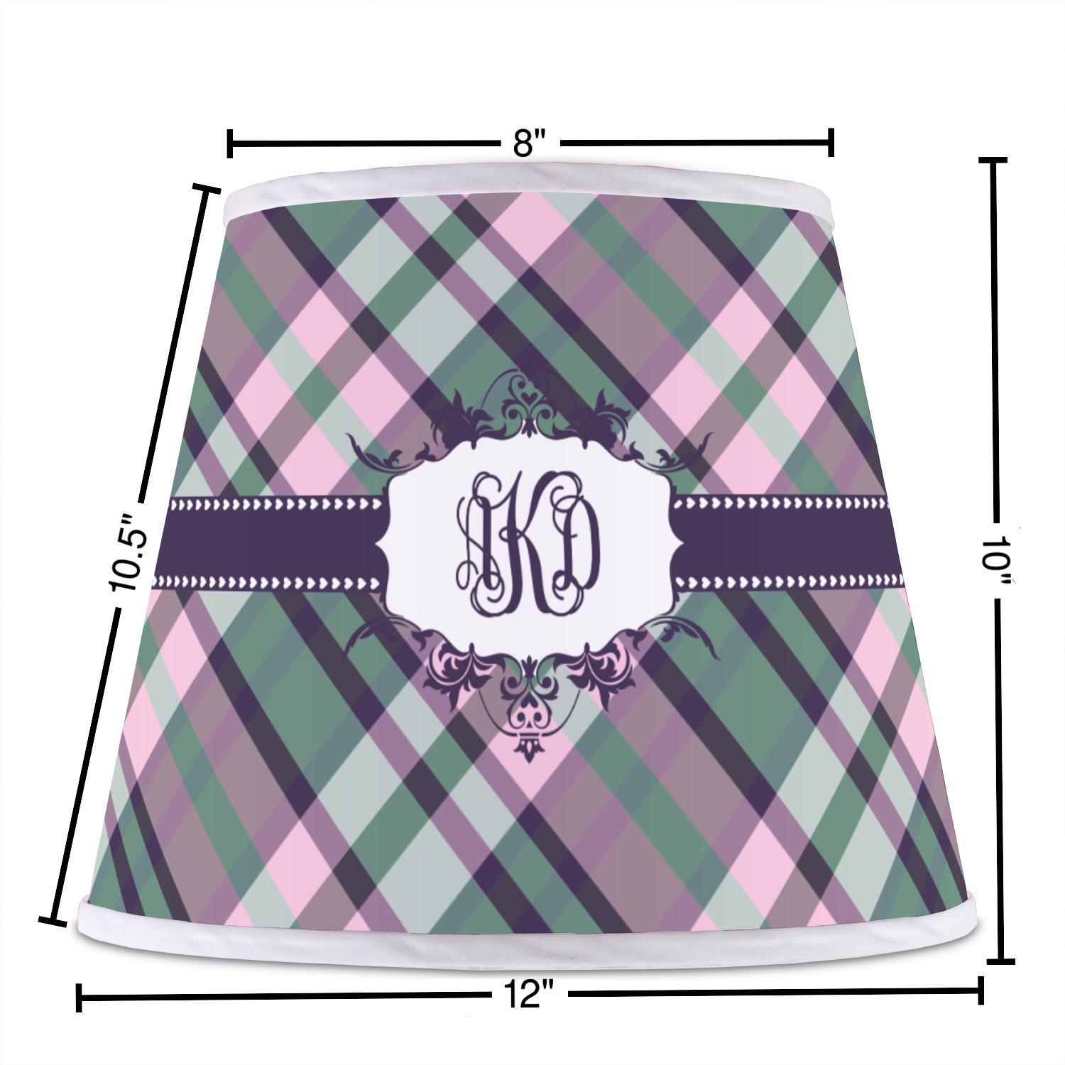 The base of this lampshade is 12 inches in diameter, and the top spans 8 inches in diameter. The total height of the lampshade is 10 inches. The angled nature of this custom lampshade concentrates the light, making it ideal for smaller spaces. This lampshade is made of matte, polyfilm, and displays your customization in its middle. The top and bottom of this colorful lamp shade are lined with a white fabric ribbon (which can be replaced with black inside the design studio) which frames your design and creates a sophisticated finish. As an UNO fitter lampshade, this unique lamp shade will fit a variety of bases.